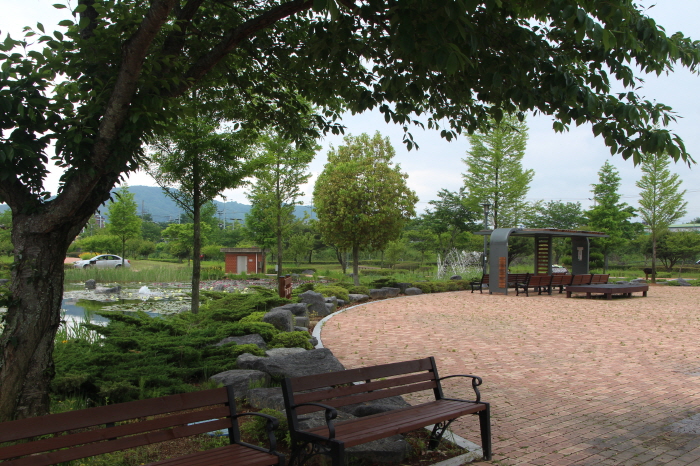 공원은 아직 넉넉한 나무가 없습니다. 그늘이 깊은 나무가 없지만, 주위의 아늑한 풍경이 아쉬움을 달래줍니다.