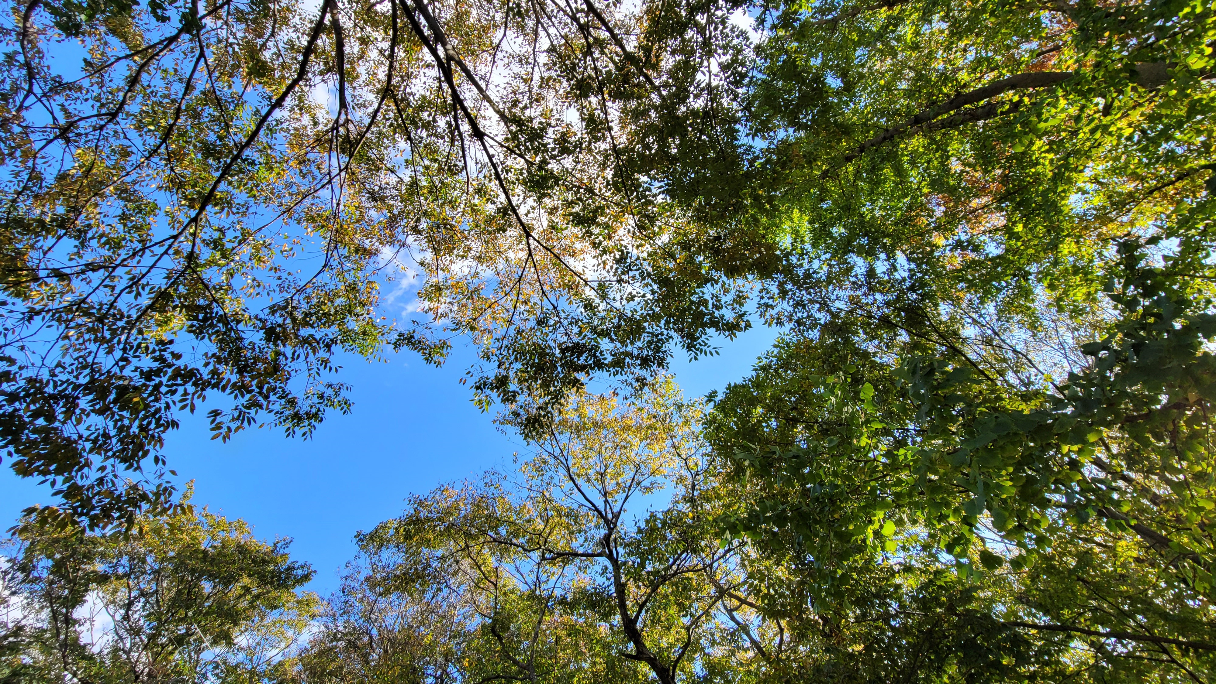 고개 들어 올려다본 하늘은 무성한 나뭇잎 사이로 하얀 구름이 자유롭게 헤엄치듯 지납니다.