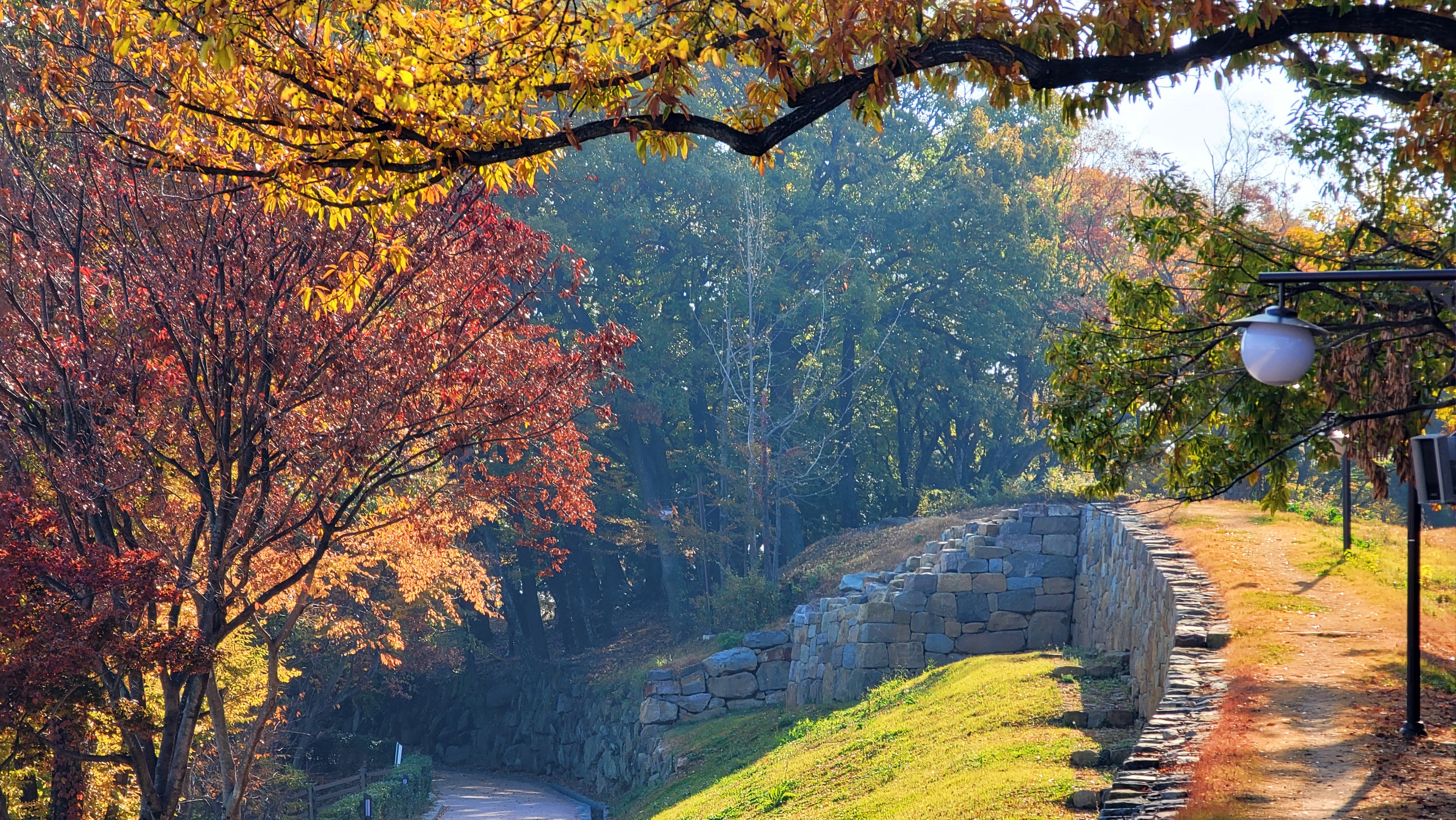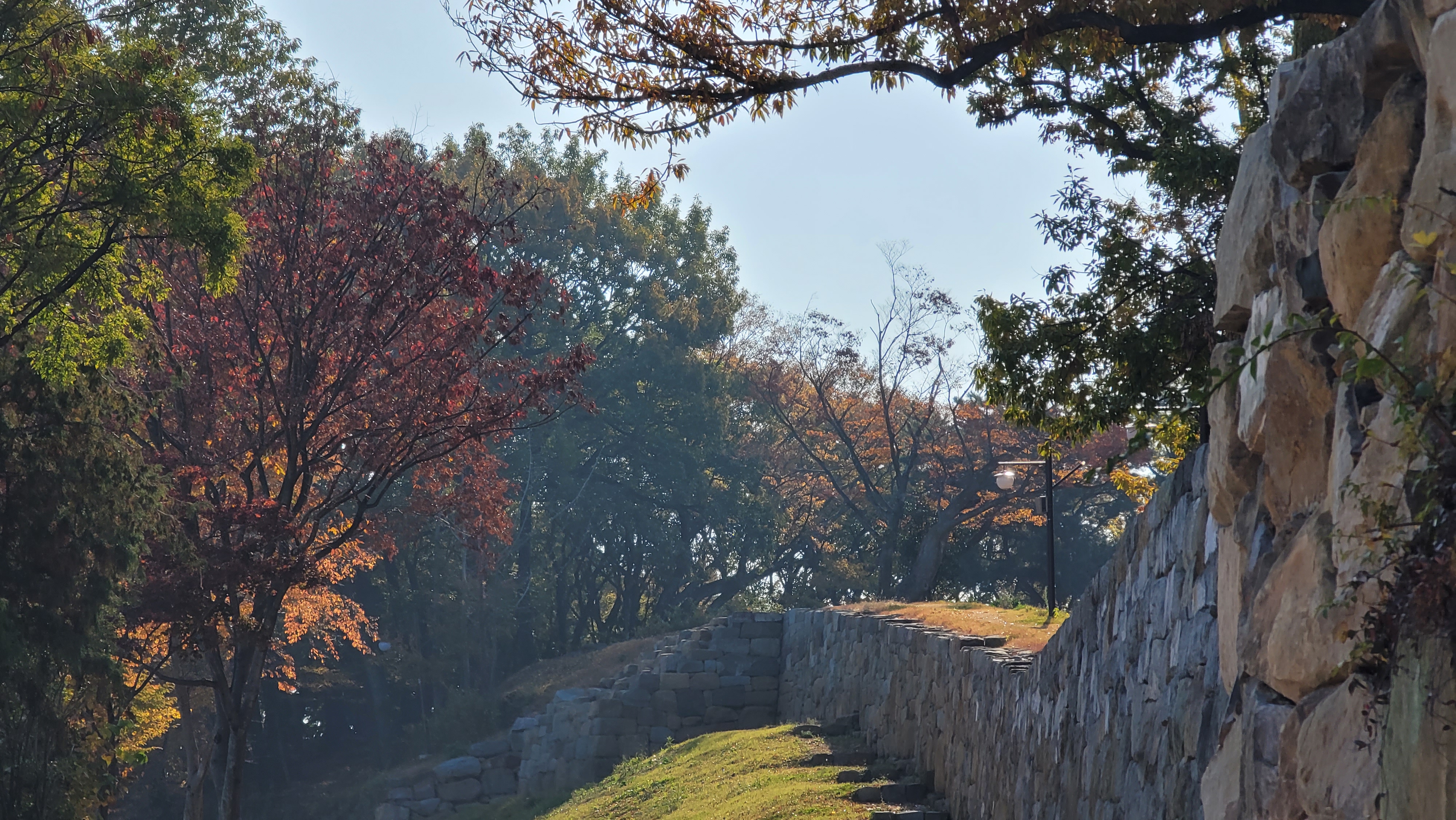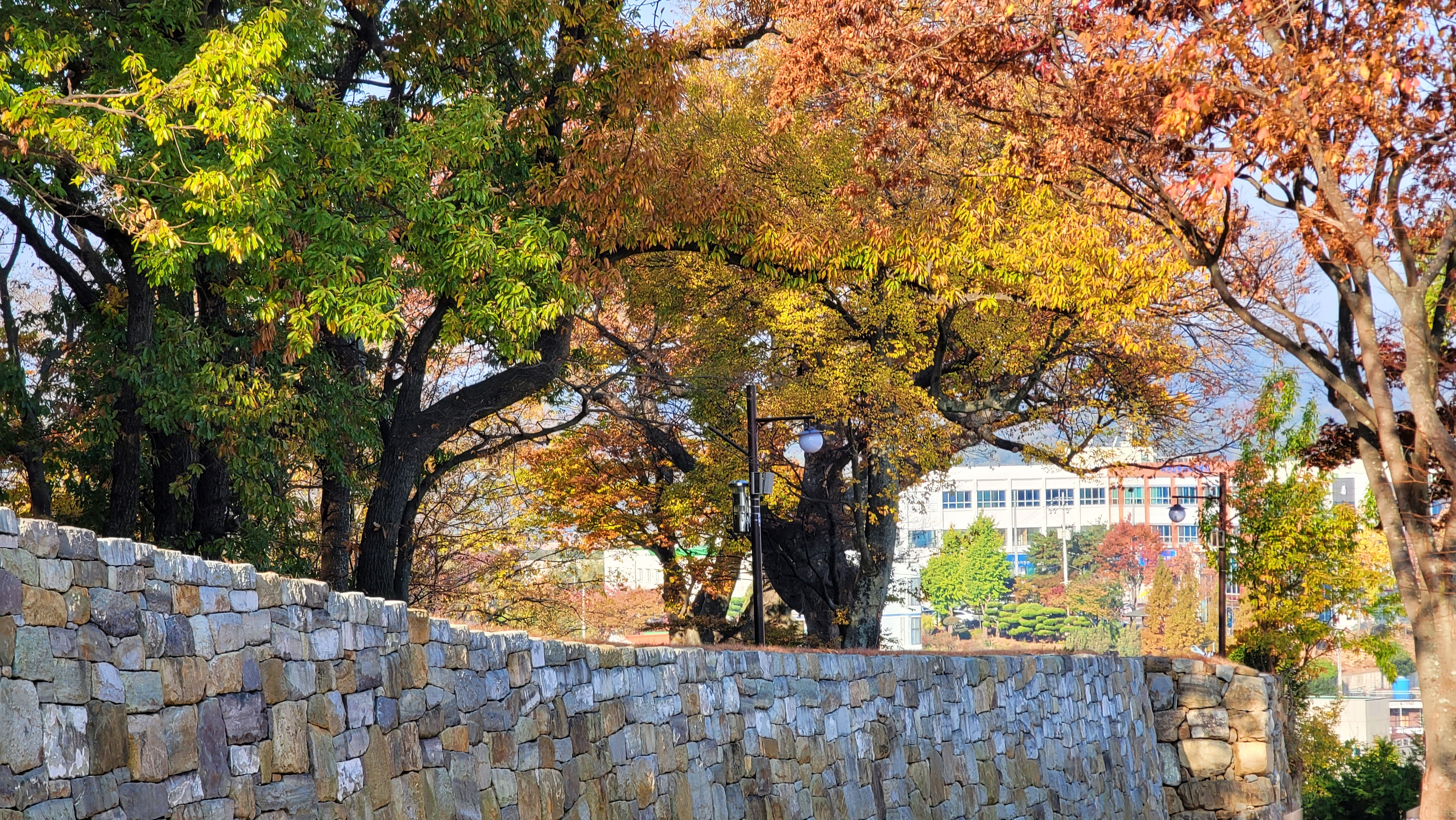 성벽 주위로 농익은 가을의 풍경이 알알이 박혀 있습니다. 나무 모두 초록 옷을 벗어 던지고 노랗고 빨갛게 꽃단장을 마쳤습니다. 읍성을 따라 걷는 길은 농익을 가을로 떠나는 길이기도 합니다.