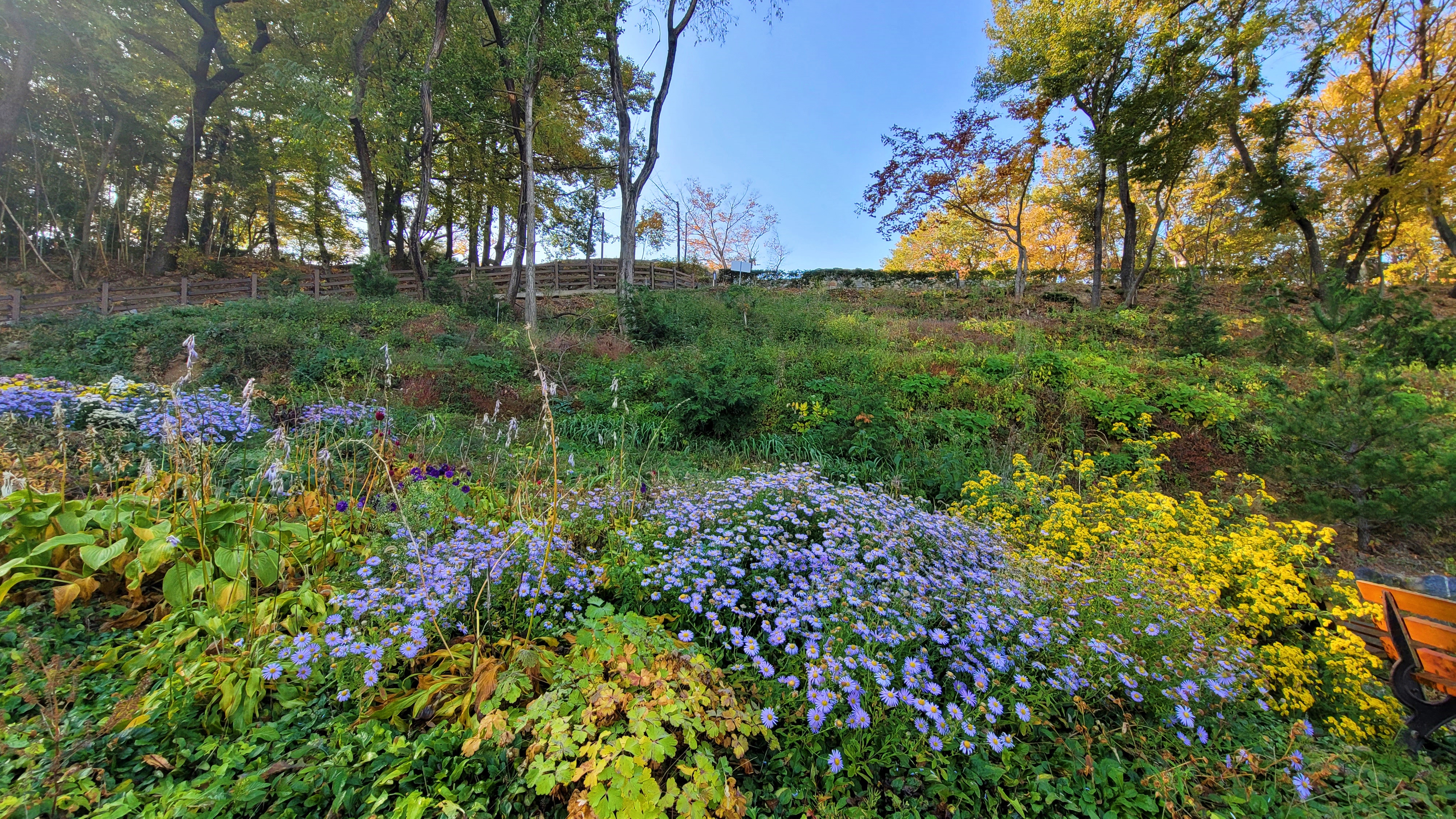 들꽃과 헤어지기 아쉬운 작별을 고하고 본격적으로 공원으로 걸음을 옮겼습니다. 공원에 들어서자 깊은 산중에라도 들어온 듯 아늑한 숲속의 기운이 온몸을 감쌉니다.