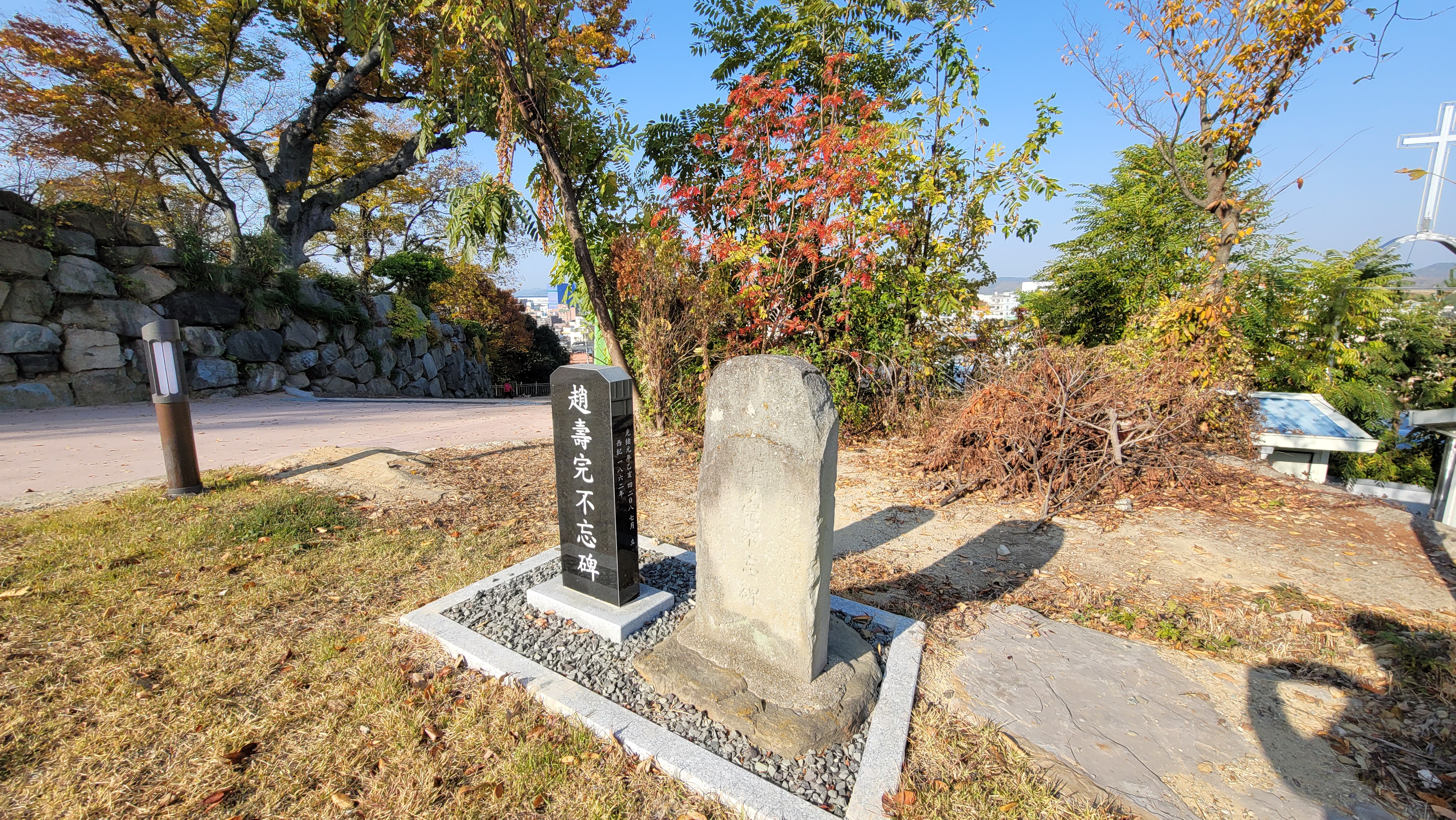 가을로 떠나는 걸음은 작은 비석 앞에 섰습니다. 조수완 공덕비입니다.