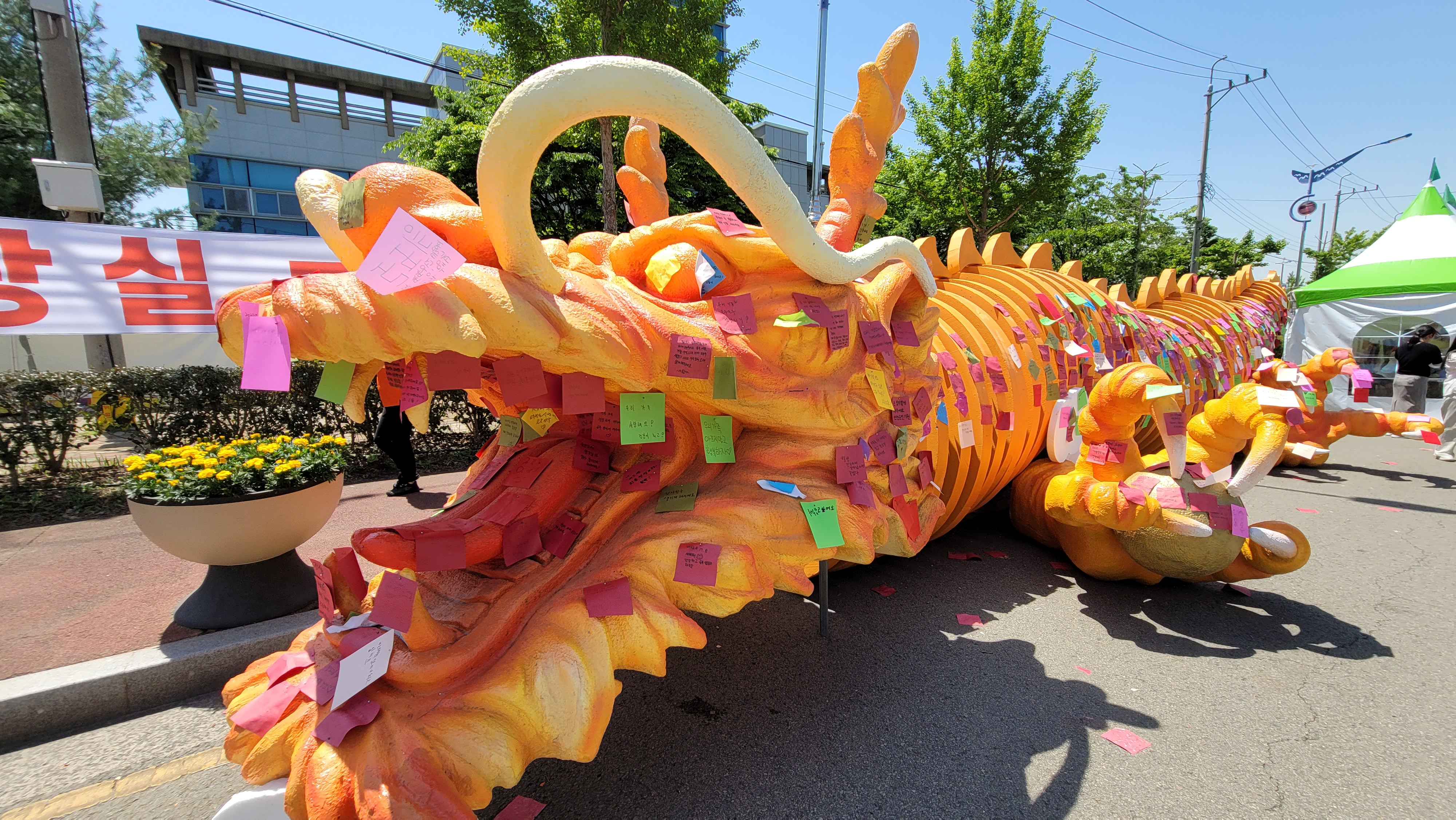 우리들의 소원이 쪽지에 담겨 용과 함께 하늘로 승천할 듯합니다.