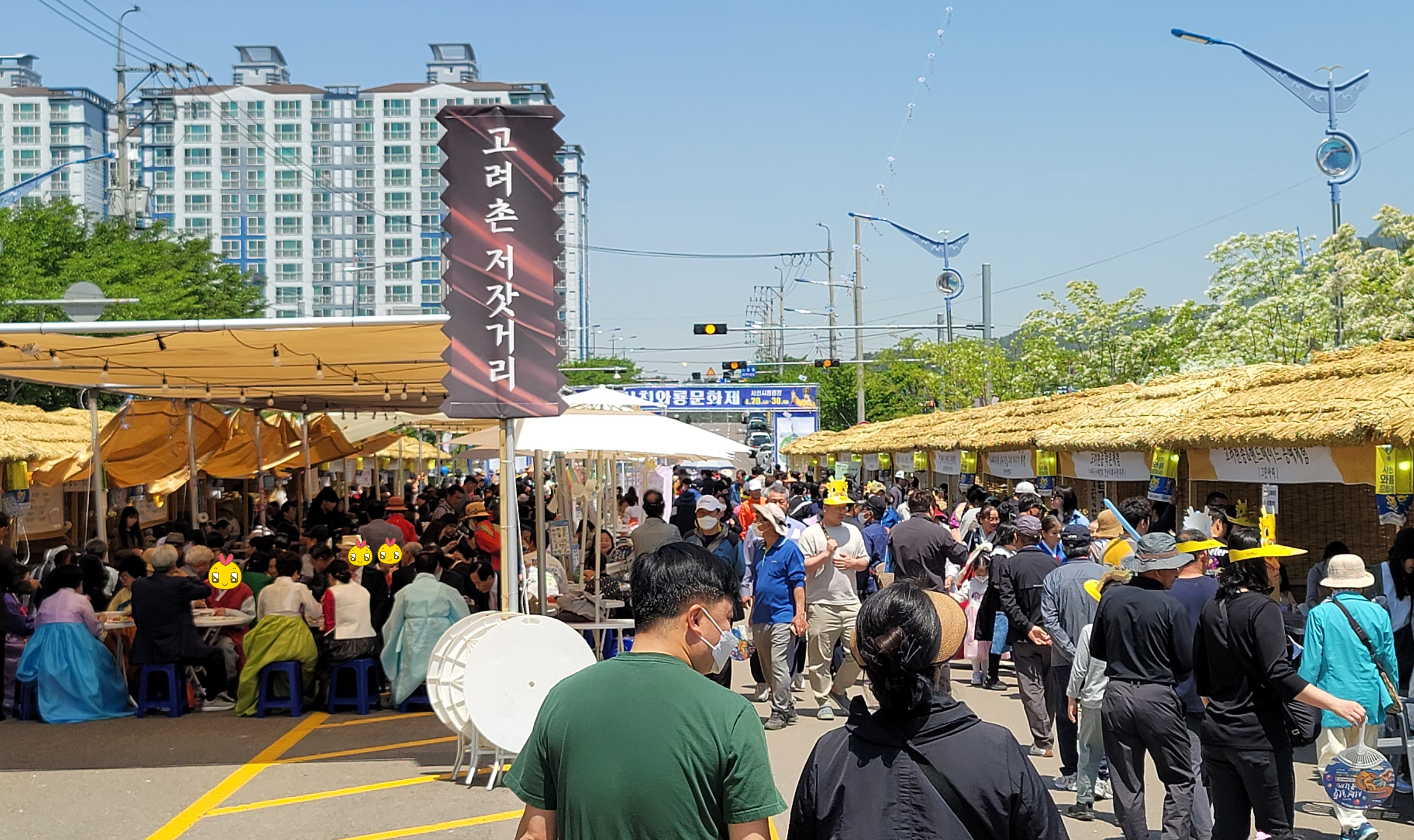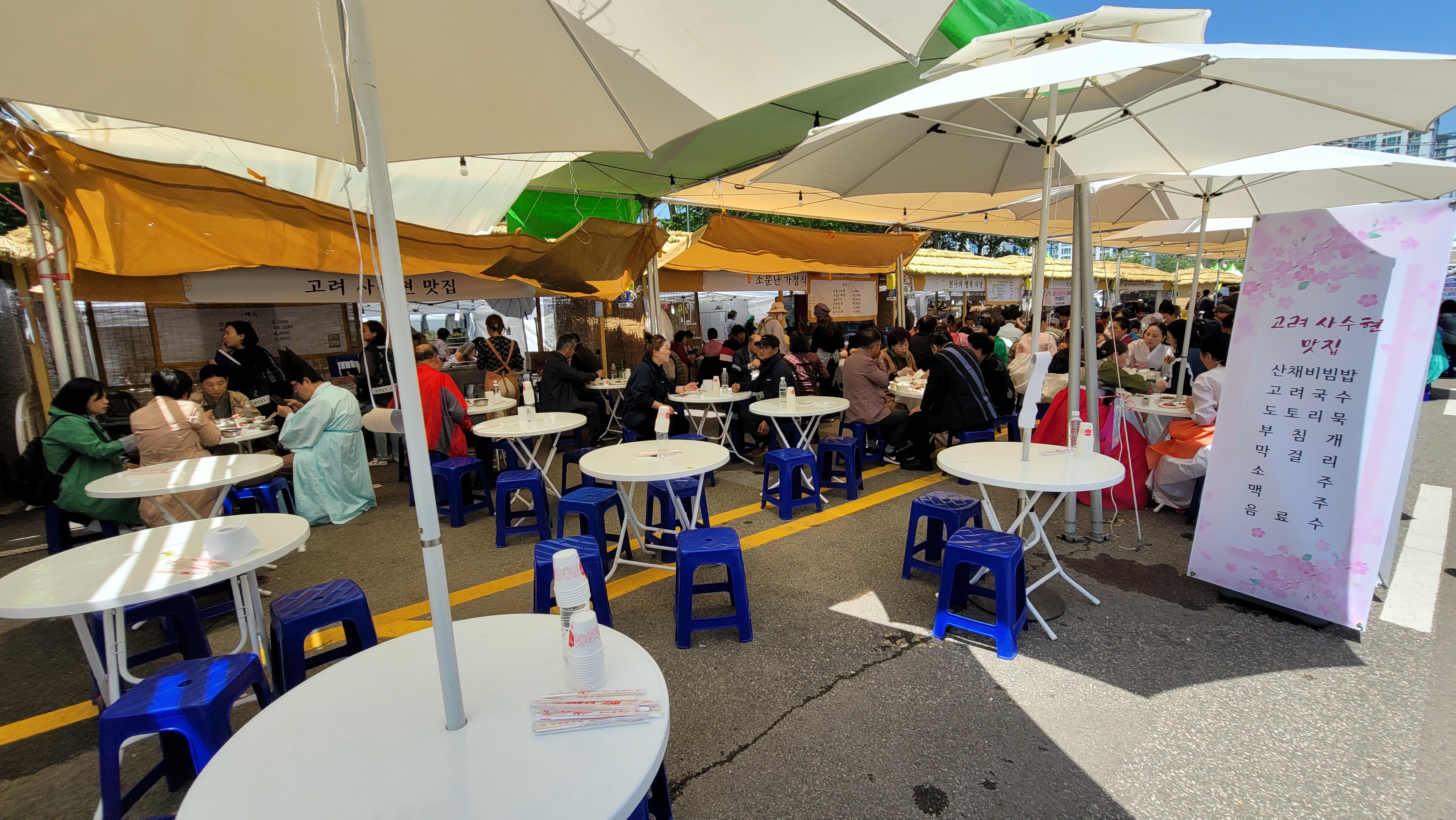 고려 사수현 맛집에서 산채 비빔밥과 고려 국수로 요기를 잠시 하고자 하는 이들로 음식 부스는 북적입니다.