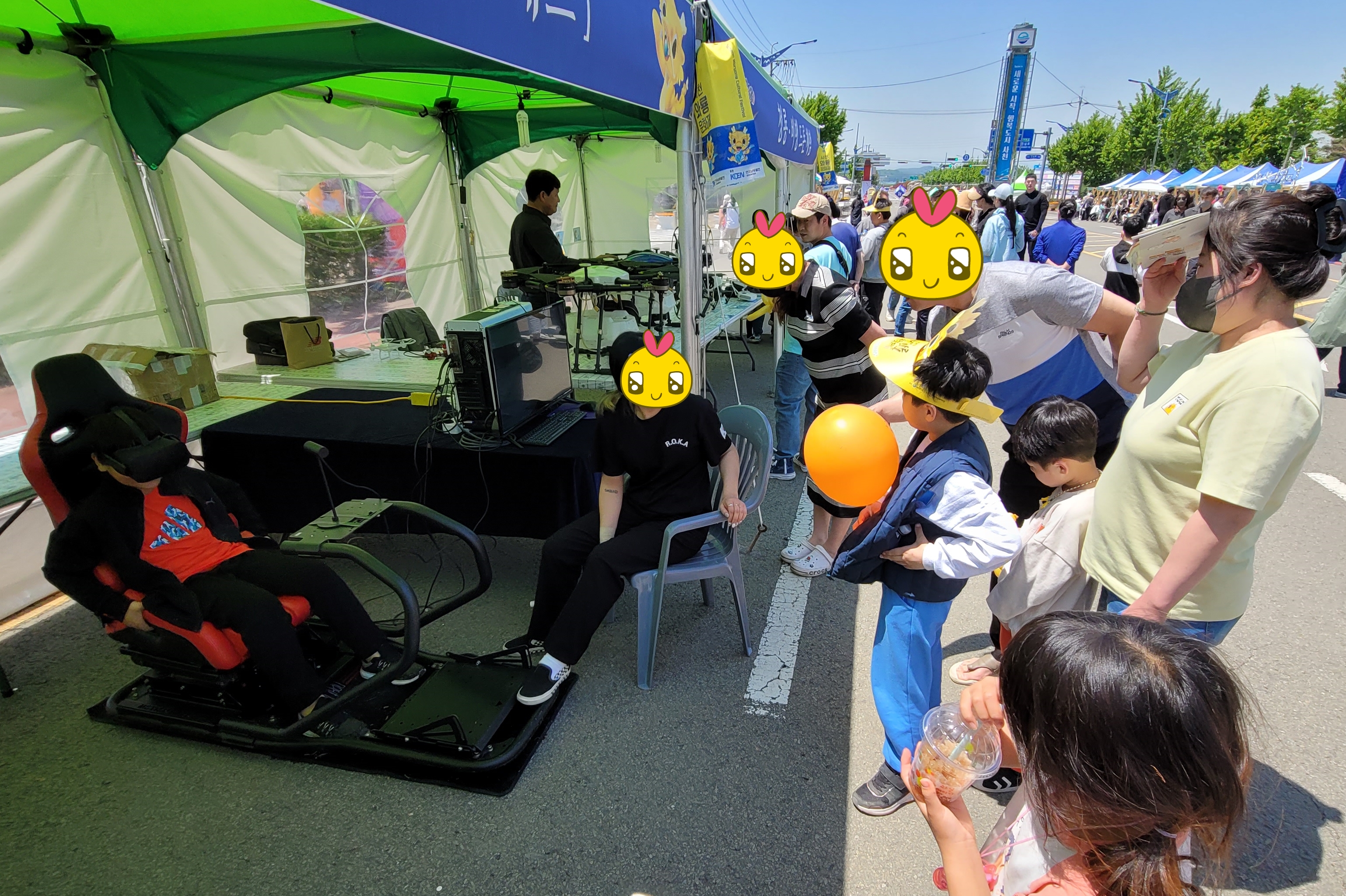 무리 지어 올라가는 연들 끝자락에는 건강마당에 펼쳐졌습니다. 다양한 건강 체험을 하며 건강을 챙겨볼 기회입니다.