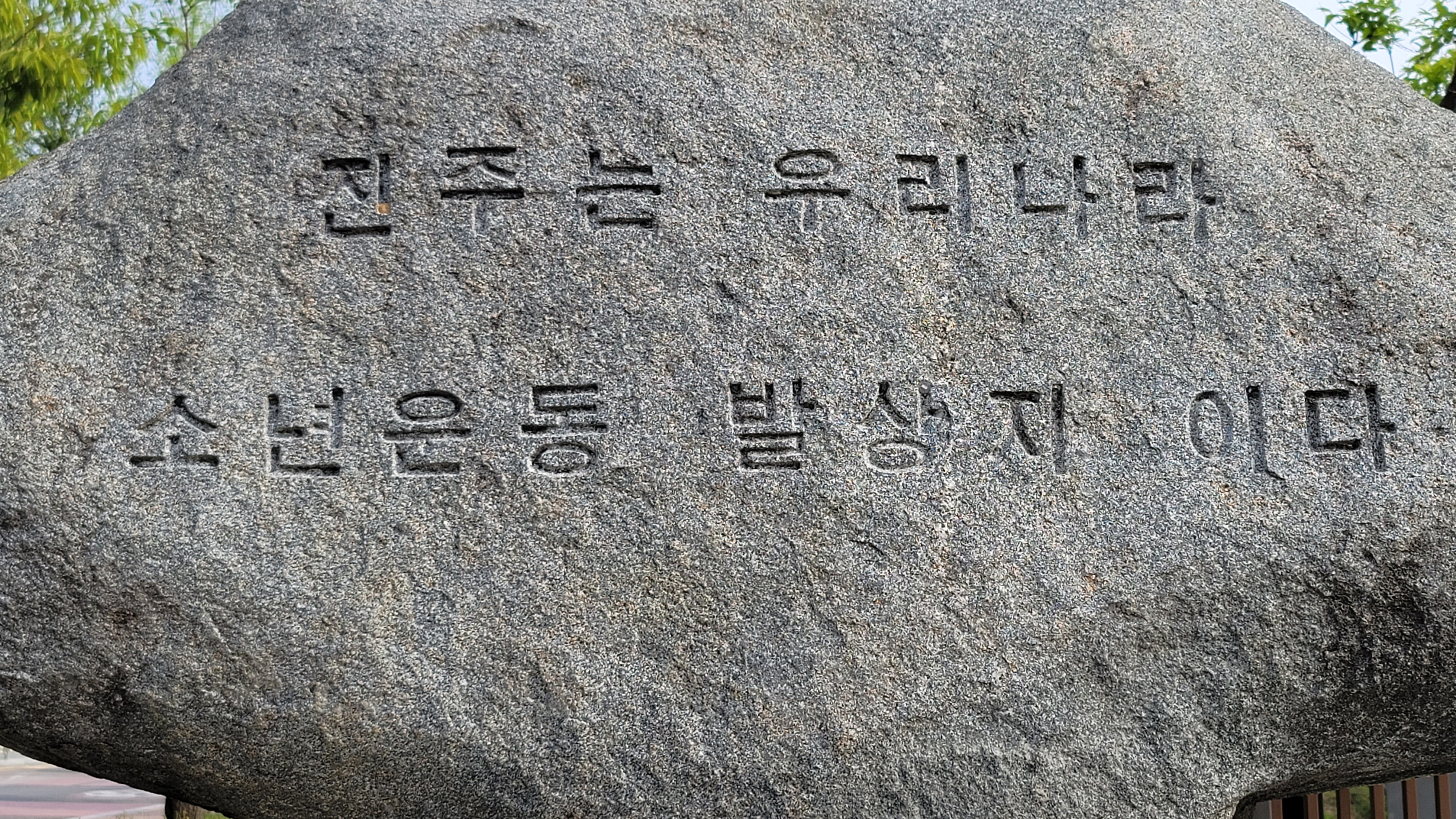 또한, 옆에는 <87년 6월 민주주의 항쟁 기념> 표지석이 함께합니다. 진주지역 6월 민중항쟁집결지를 알립니다.