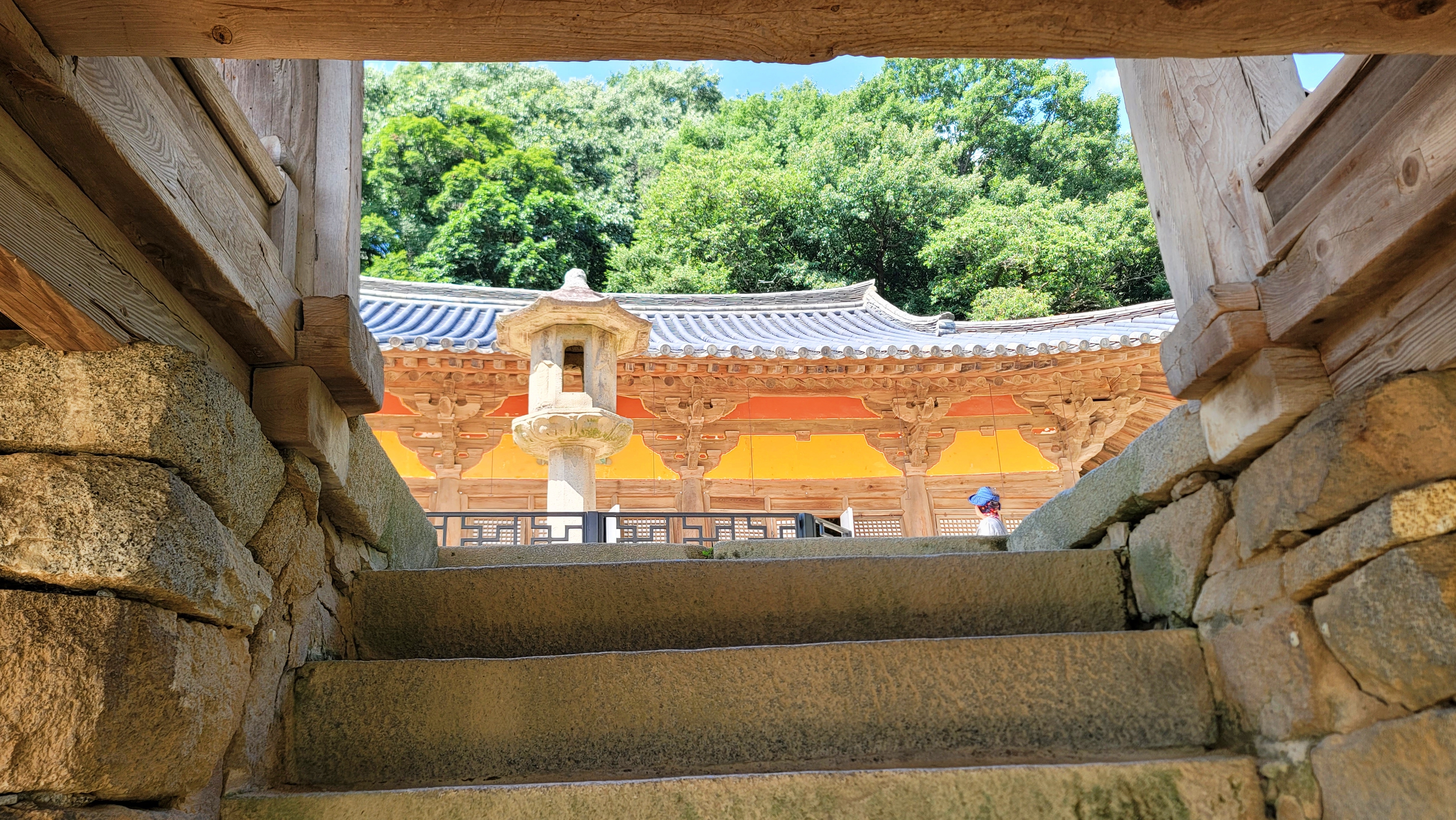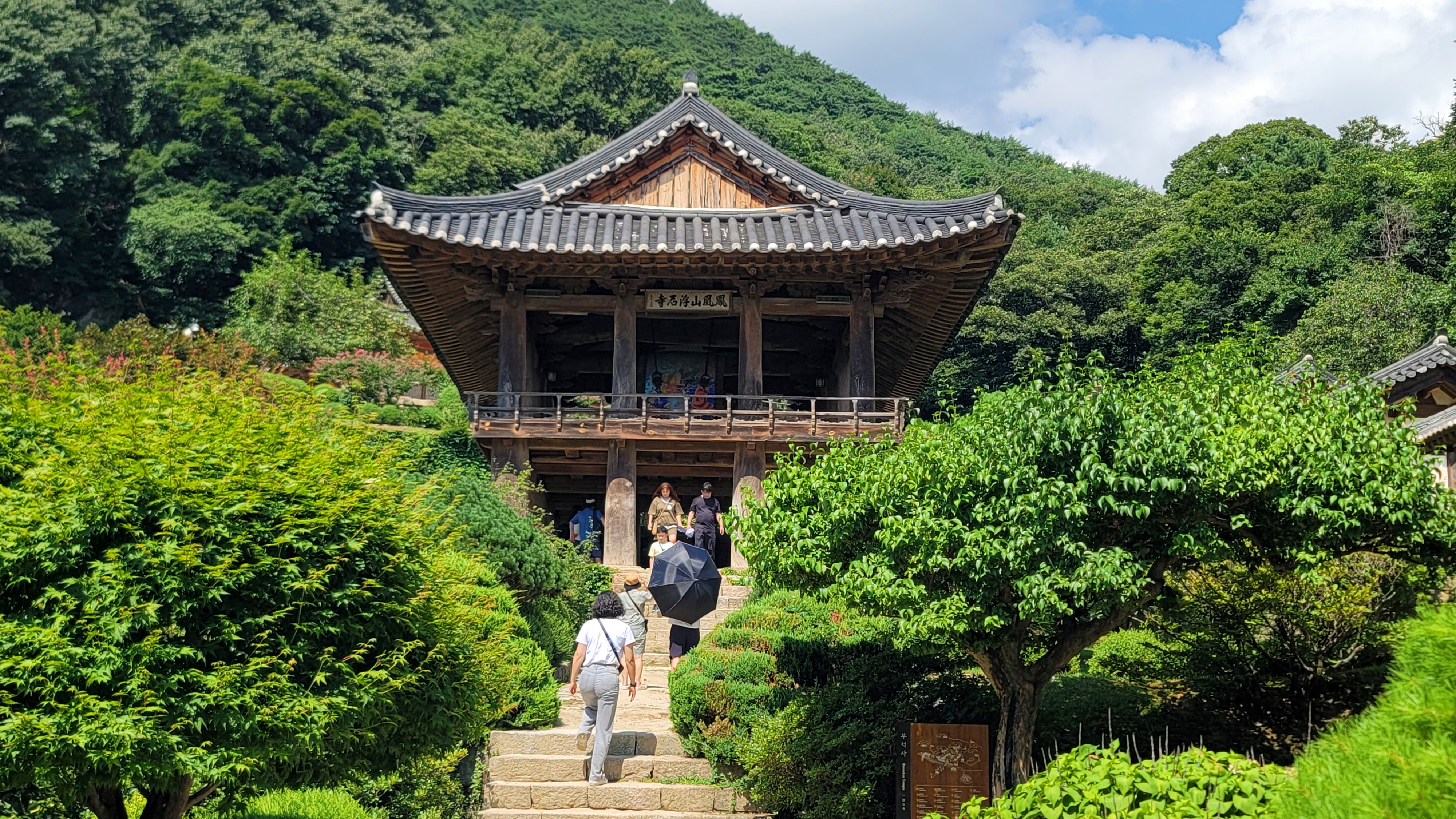 무량수전으로 내려갔습니다. 다시금 안양루에 앉아 멍때리듯 아래를 내려다봅니다. 그저 바라보는 것만으로도 복잡한 머릿속 고민과 스트레스가 사라집니다. 시원하게 부는 바람이, 고요한 풍광이 우리를 위로합니다.