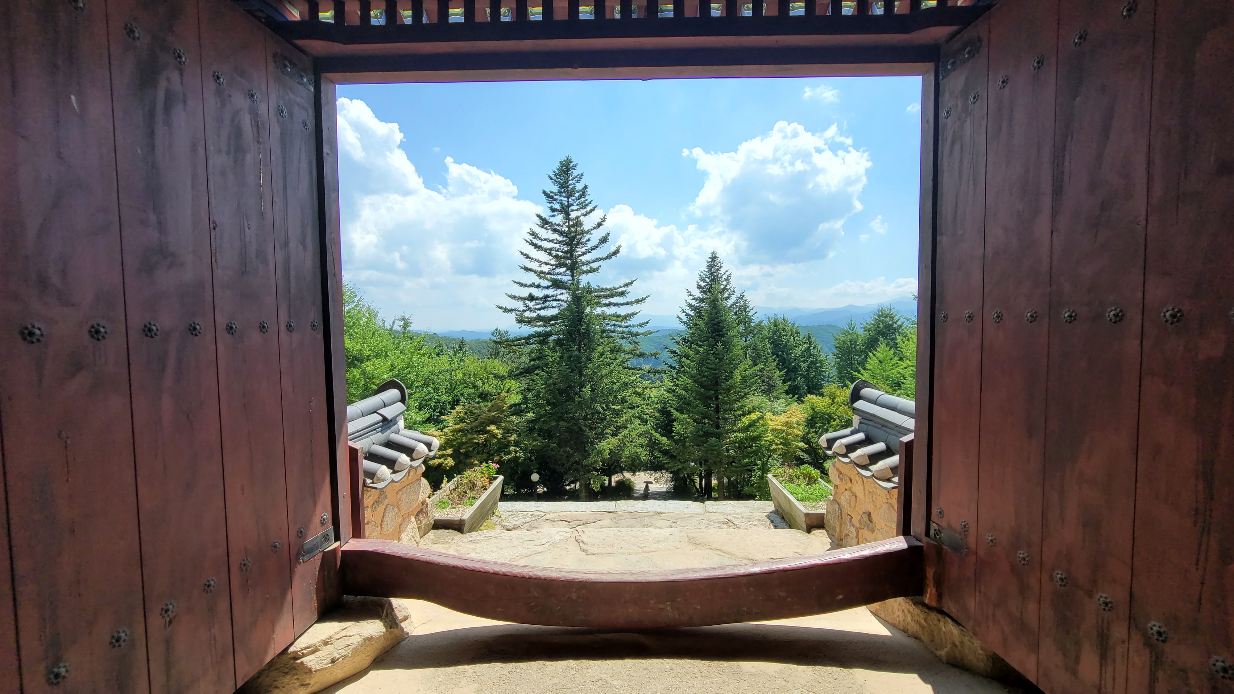 극락으로 가는 길이라 생각하니 계단 오르는 수고가 덜 힘듭니다. 지나온 문을 돌아보니 고운 풍경들이 따라옵니다.