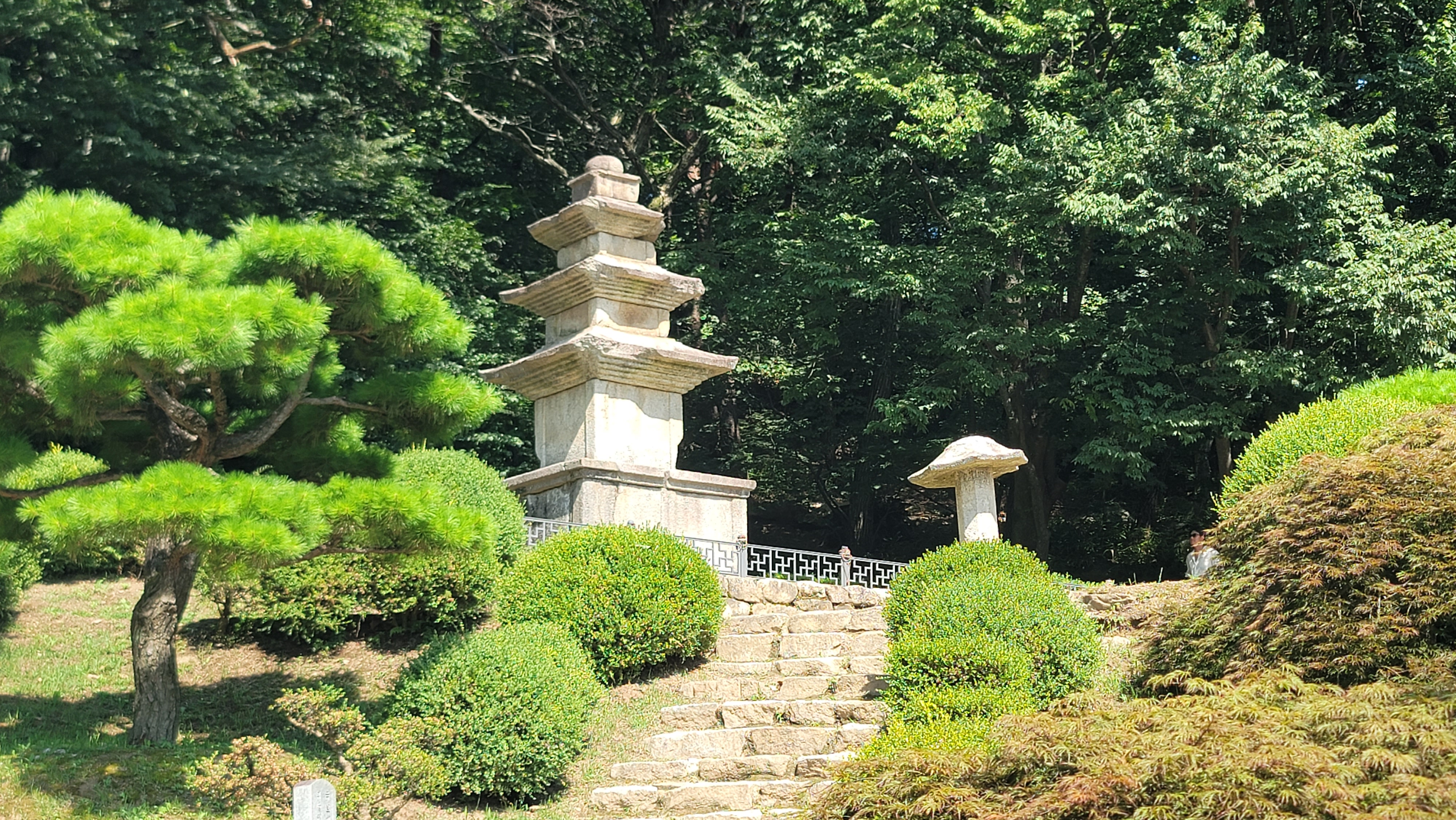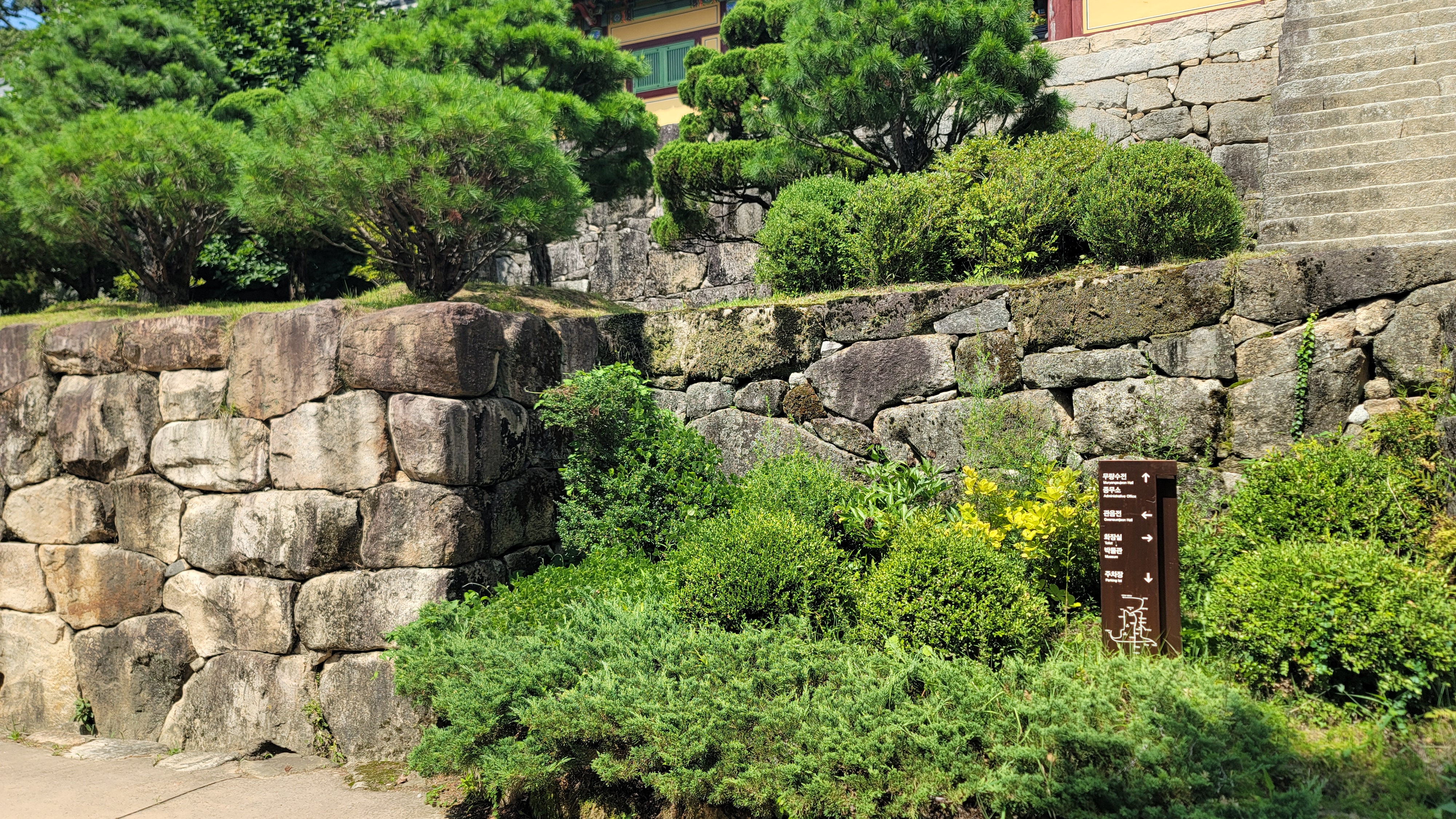 천왕문에서 무량수전까지 이어지는 돌계단은 9단으로 이루어져 있습니다. 천왕문에서 범종각 앞마당까지가 하 3단이고 범종각부터 안양루 앞마당까지가 중3 단, 안양루에서 무량수전까지가 상 3단입니다.