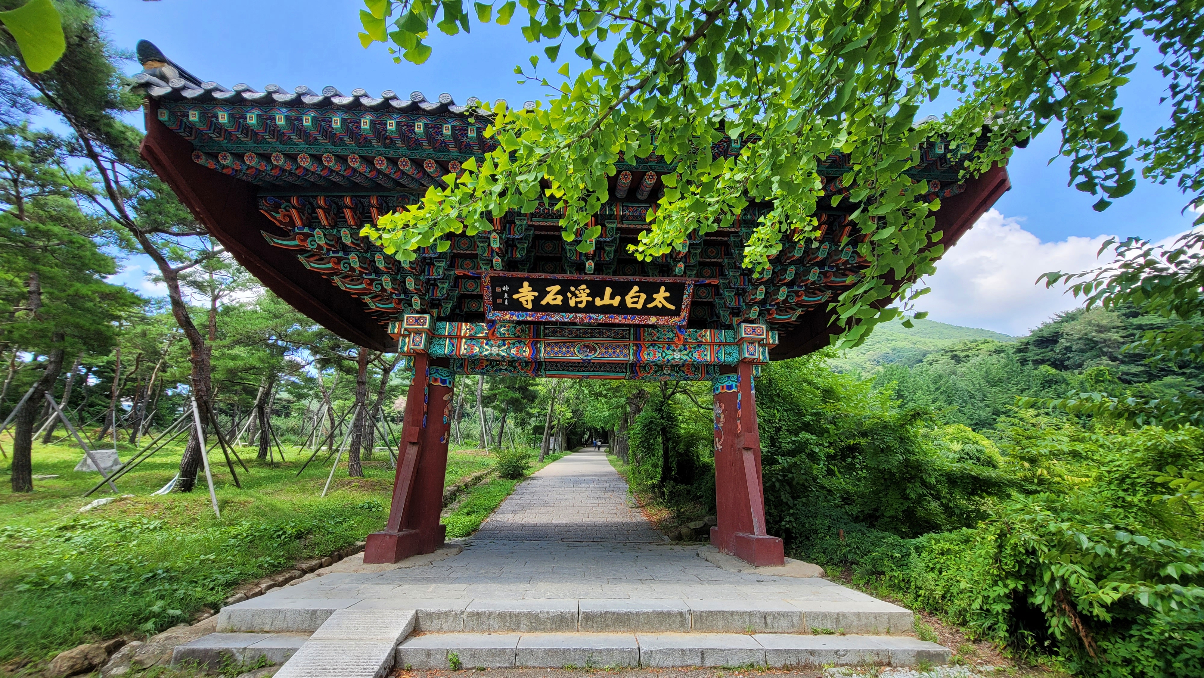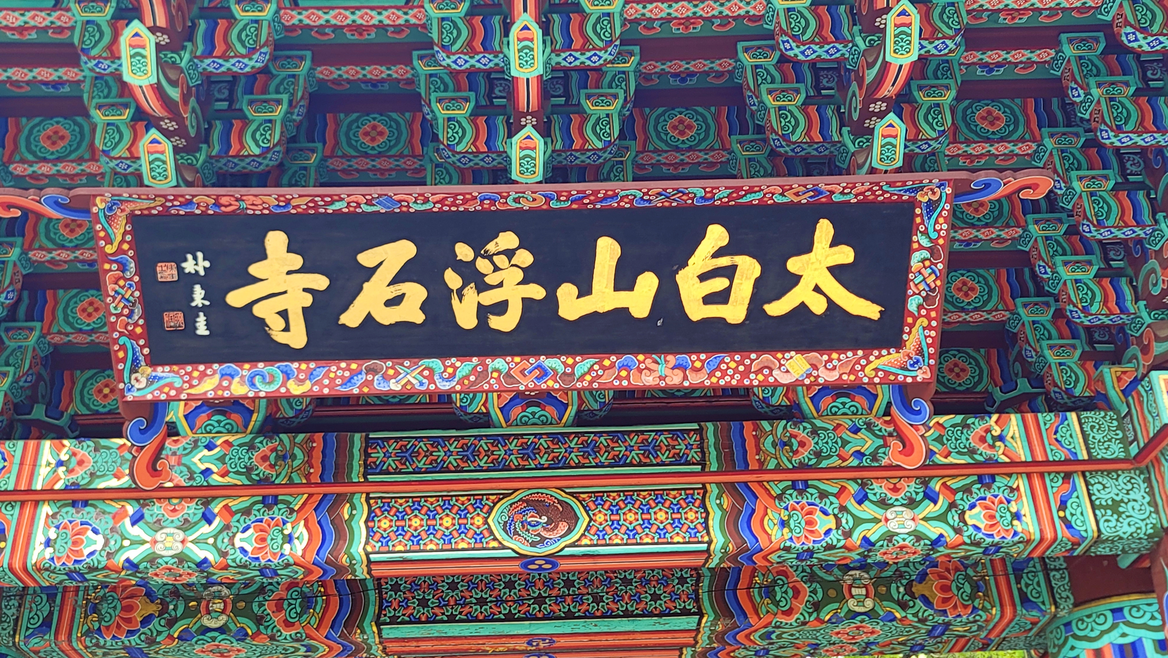 은행나무 터널을 지나자, 일주문이 나옵니다. <태백산(太白山) 부석사(浮石寺)>란 편액이 걸려 있습니다. 부석사는 경상북도 영주시 부석면과 봉화군 물야면의 경계를 이루는 봉황산(鳳凰山) 산자락에 있습니다. 해발고도 819m의 봉황산은 소백산국립공원에 속하는데 일주문에는 왜 태백산이라고 적혔을까요?