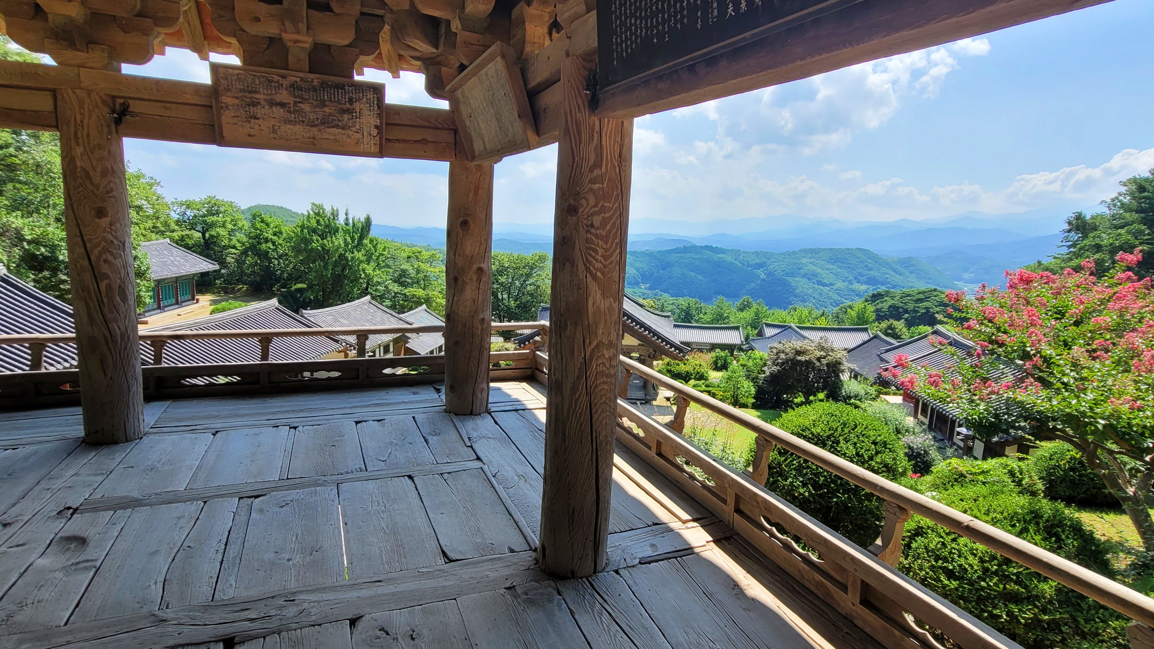 마치 이제야 찾은 배 나온 중년을 나무라는 듯합니다. 배 나온 무량수전 배흘림기둥에서 서서 주위 풍광을 두 눈에 꾹꾹 눌러 담았습니다. 눈을 돌리는 곳마다 산의 능선들이 겹쳐서 한 폭의 수묵화가 펼쳐집니다. 잔잔한 평화가 일렁입니다.