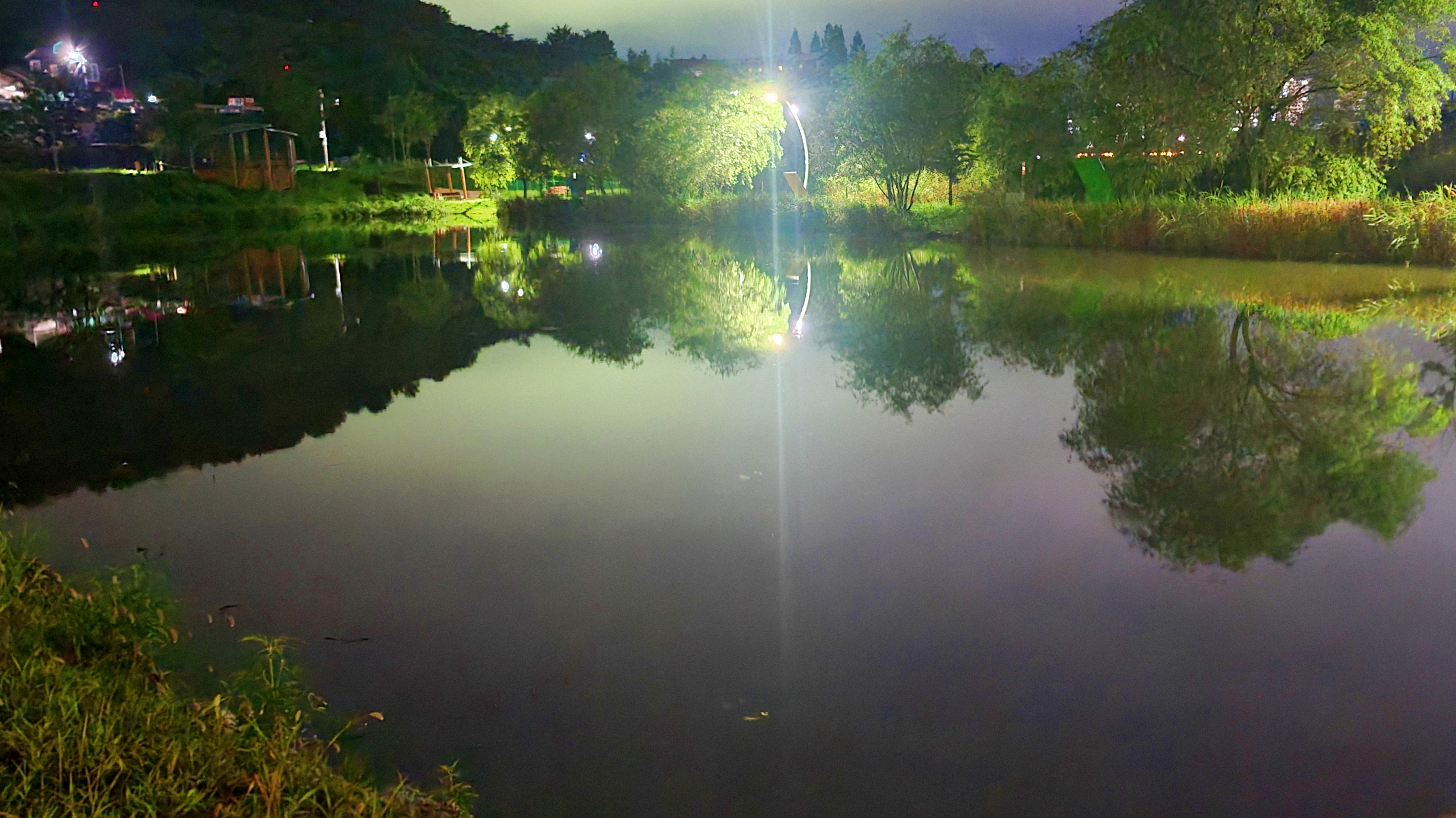 연못에 달을 대신해 비추는 가로등. 그 빛줄기를 따라 일상 속 묵은 번뇌를 내려놓습니다.