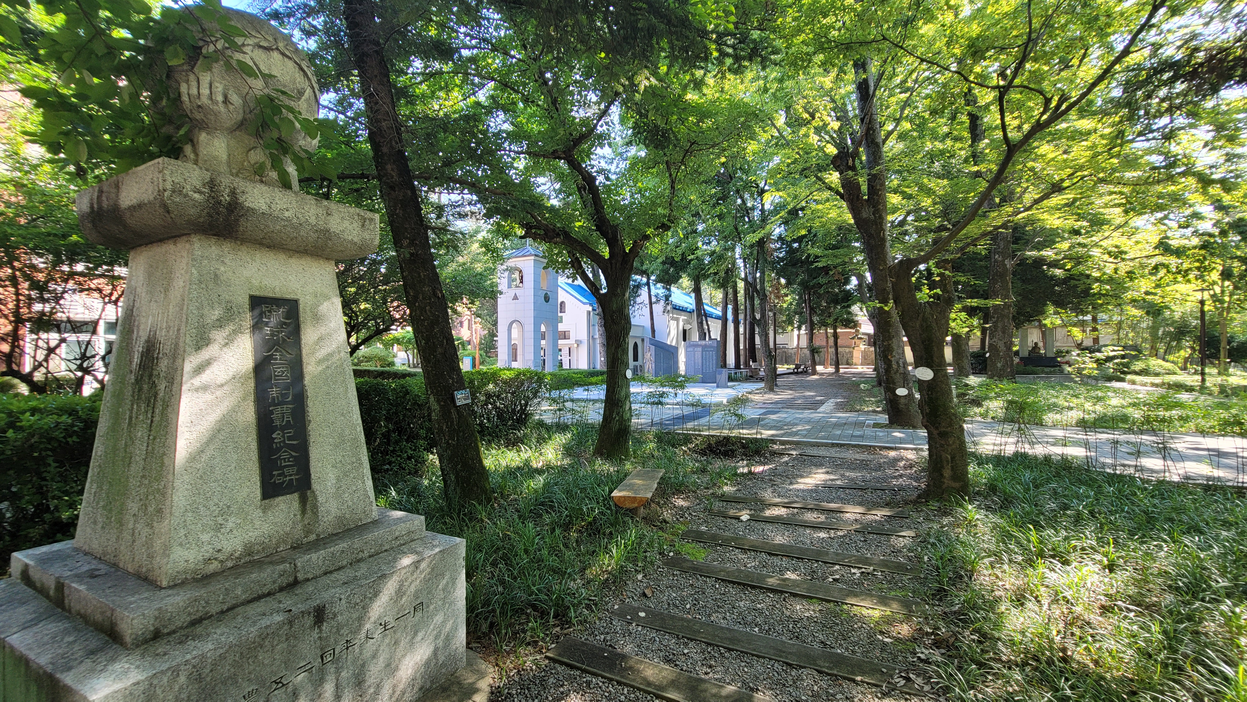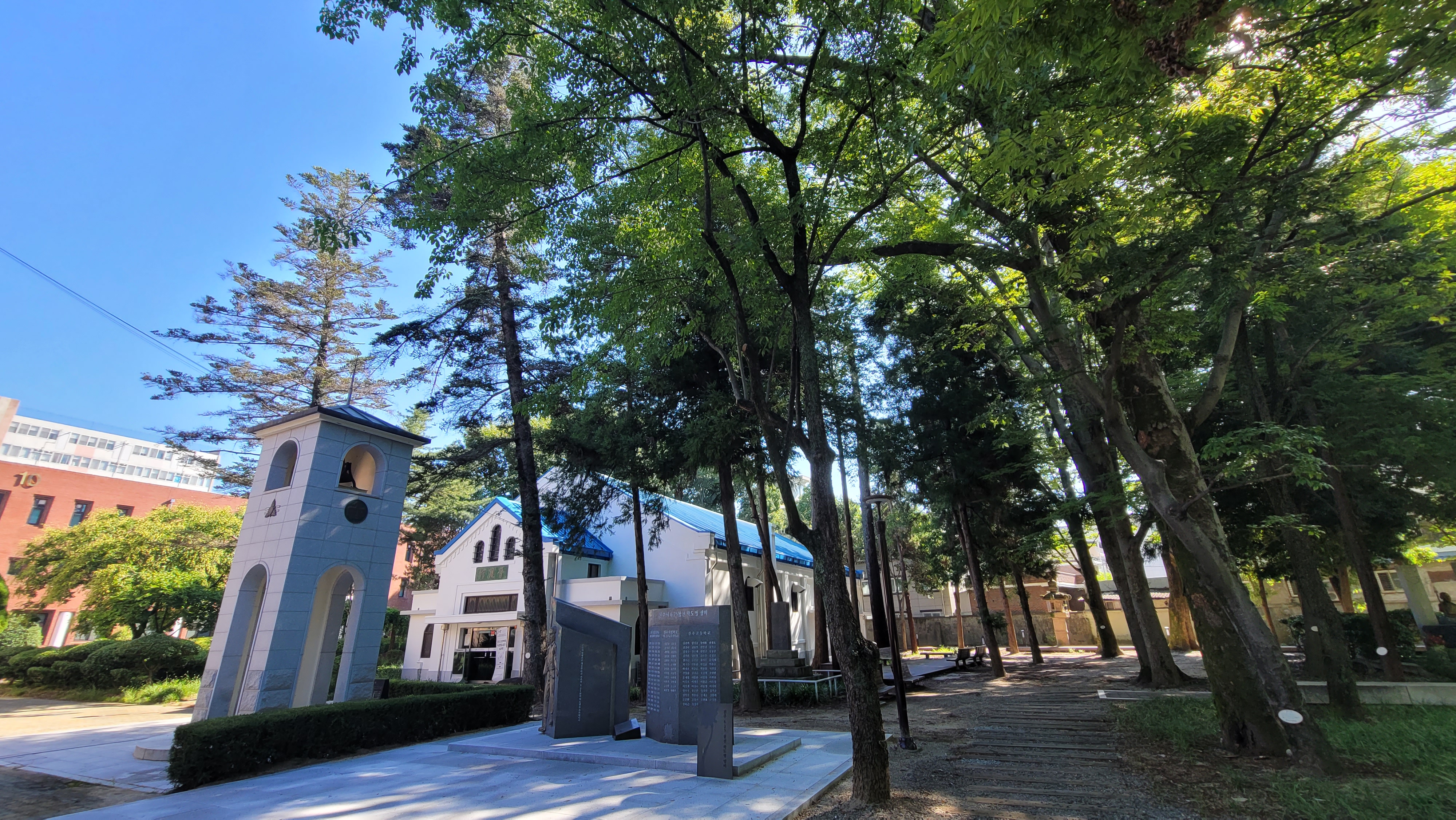 마치 산중 깊은 숲속에라도 들어온 양 넉넉한 학교 숲을 잠시 거닐면 저만치에서 칠암캠퍼스박물관(진농관)이 나옵니다.