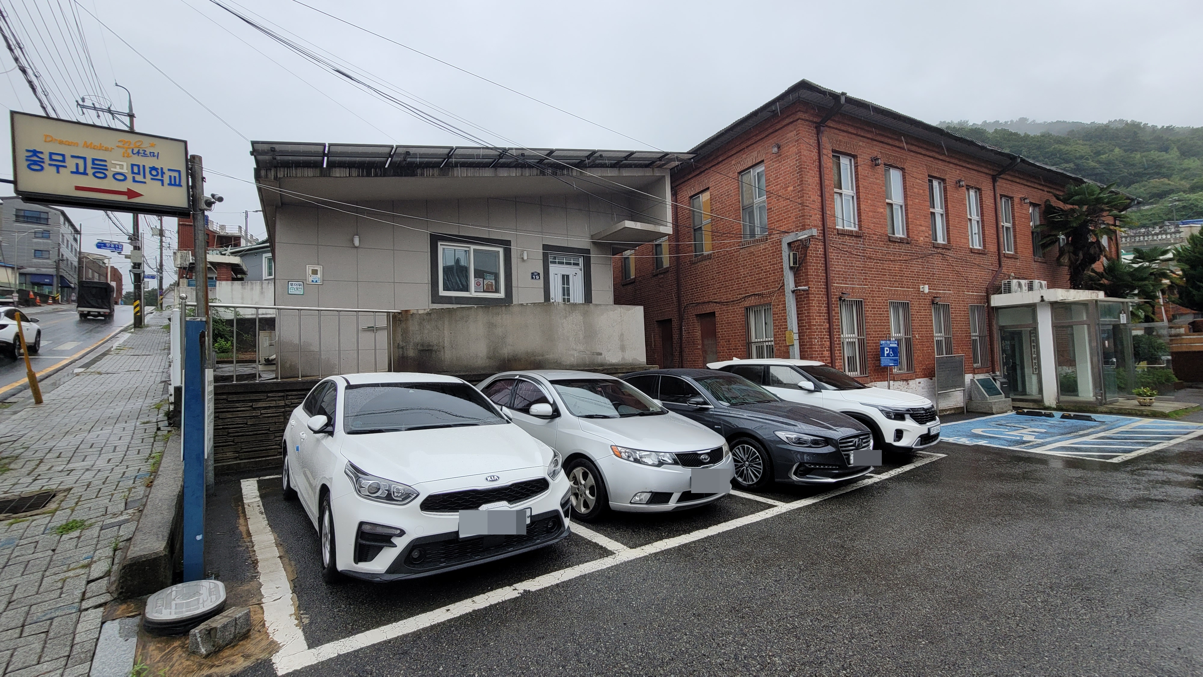 우물가 바로 뒤편이 문화원입니다. 바로 갈 수 없어 다시금 도로변으로 해서 문화원으로 걸음을 옮겼습니다. 문화원과 마당을 같이 하는 맞은 편 빨간 벽돌집이 눈에 들어옵니다. 옛 통영청년단회관이었던 충무고등공민학교입니다.