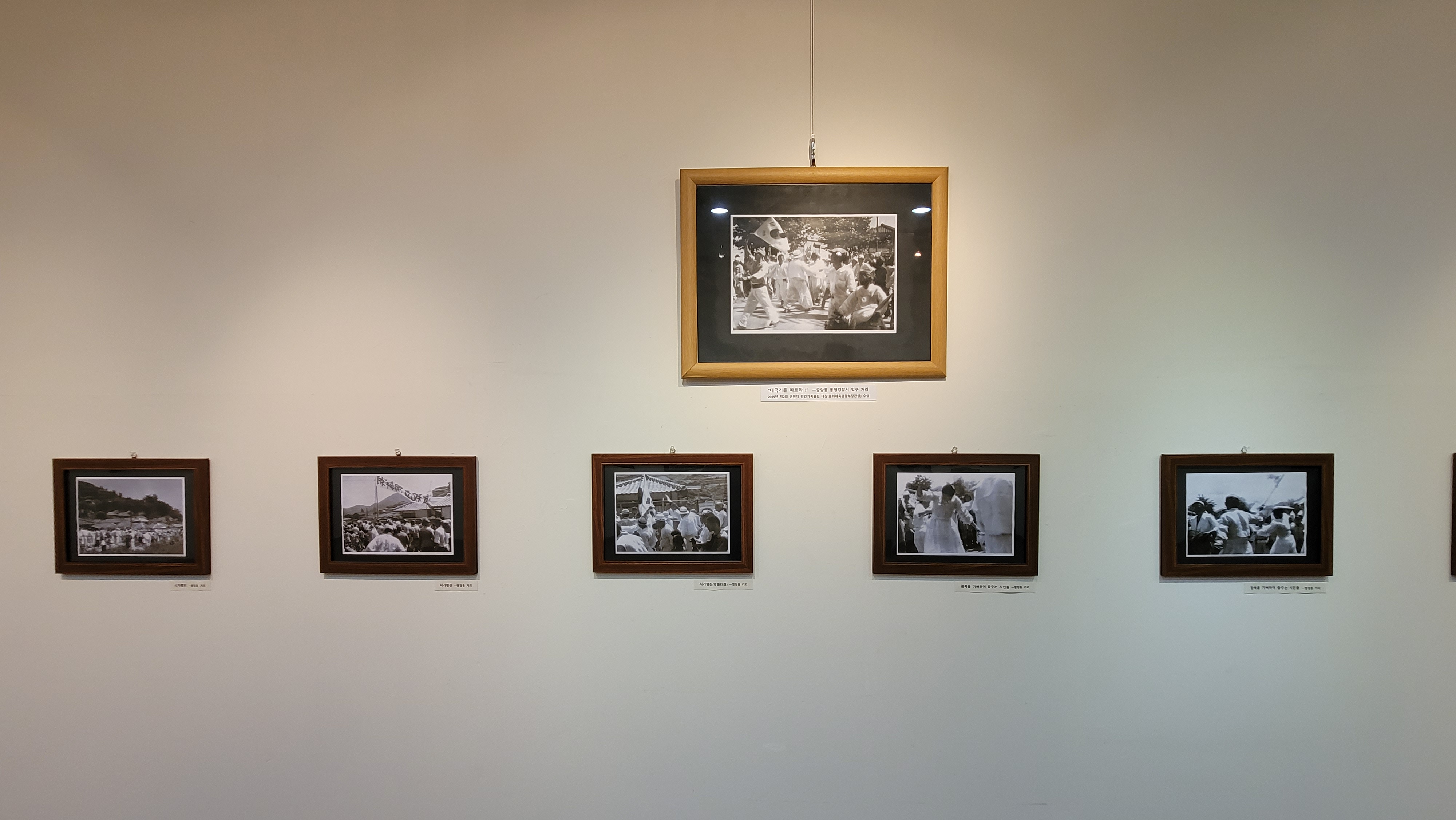 전시실 내 개별 사진은 소장자의 요구로 사진 촬영을 할 수 없습니다. 하지만 김일룡 통영문화원 원장이 '2019 지방문화원의 날' 기념행사에서 '제2회 근현대 민간 기록물 공모전' 부문 대상을 받은 <“태극기를 따르라!”> 사진을 비롯한 소중한 기록들이 우리에게 광복의 기쁨을 전해줍니다.