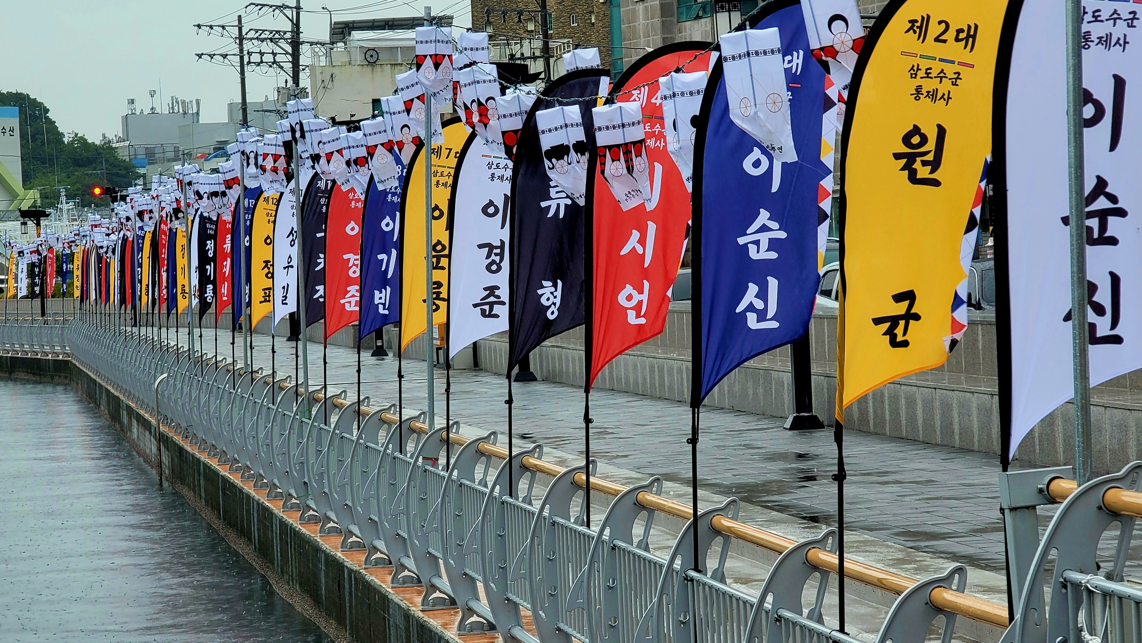 통영은 동아시아 국제전쟁(임진왜란)의 분기점이었던 한산대첩이 있었던 곳입니다. 더구나 오늘날 해군사령부와 같은 삼도수군통제영이 300년간 이어져 온 호국 성지입니다. 찾은 날에도 비가 내렸습니다. 제64회 한산대첩 축제(8/8~8/14)가 통영 곳곳에 열리고 있어 비가 내리는 중에도 강구안을 둘러보았습니다.