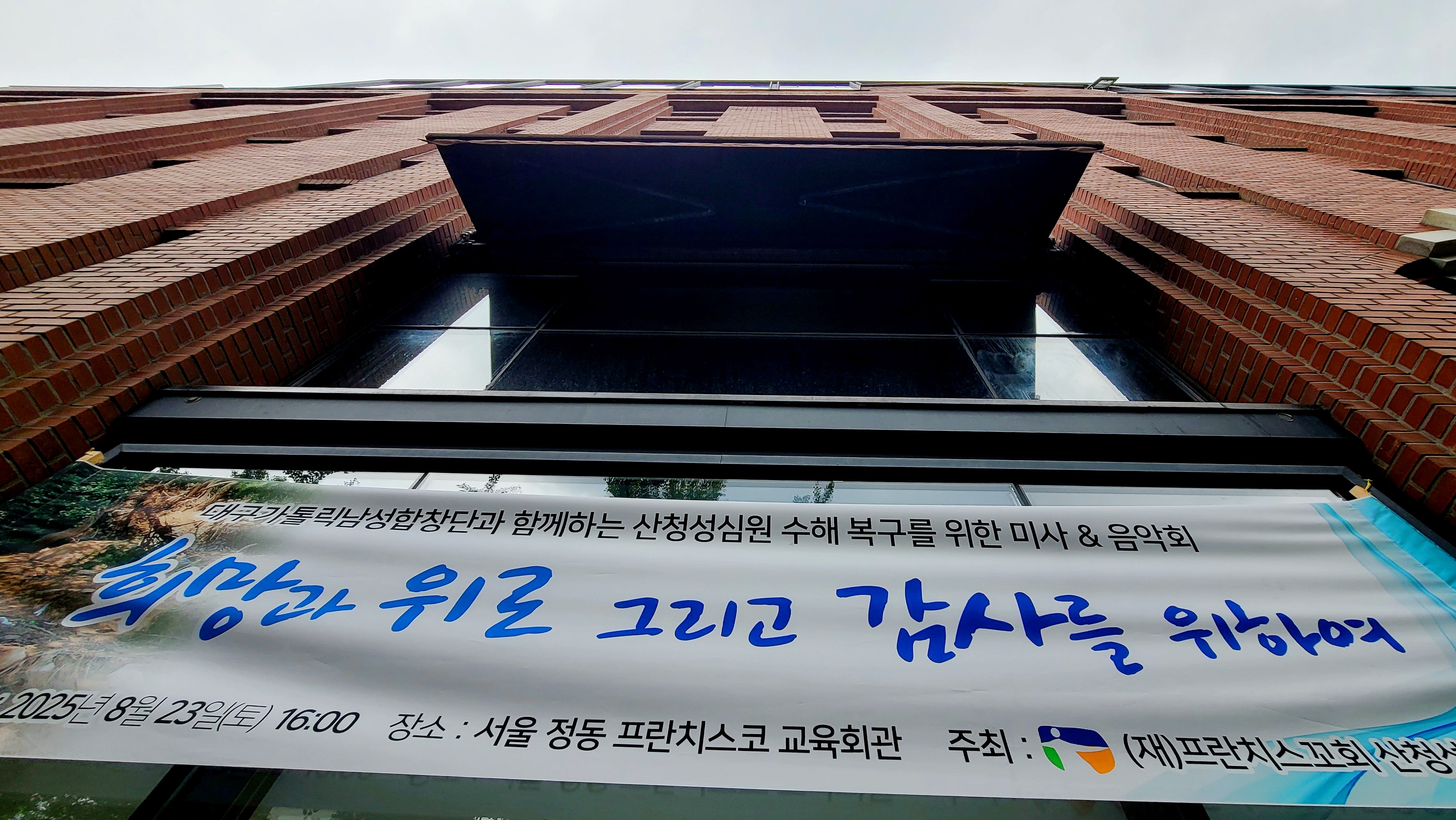 지난달 19일, 산청군에는 800㎜ 폭우가 쏟아져 14명이 목숨을 잃었고 1명은 아직도 행방을 모릅니다. 물 폭탄이 쏟아져 산청 지역을 휩쓸고 간 날, 지리산 웅석봉 자락에 안겨있던 성심원도 엄청난 수해를 벗어날 수 없었습니다. 오히려 인명 피해가 없는 게 다행이라 여길 정도였습니다. 성심원이 다시 ‘희망과 위로 그리고 감사를 위한 시간’을 함께하고자 서울 정동 프란치스코 회관에서 ‘수해 복구’ 위한 미사·음악회를 23일, 열었습니다.
