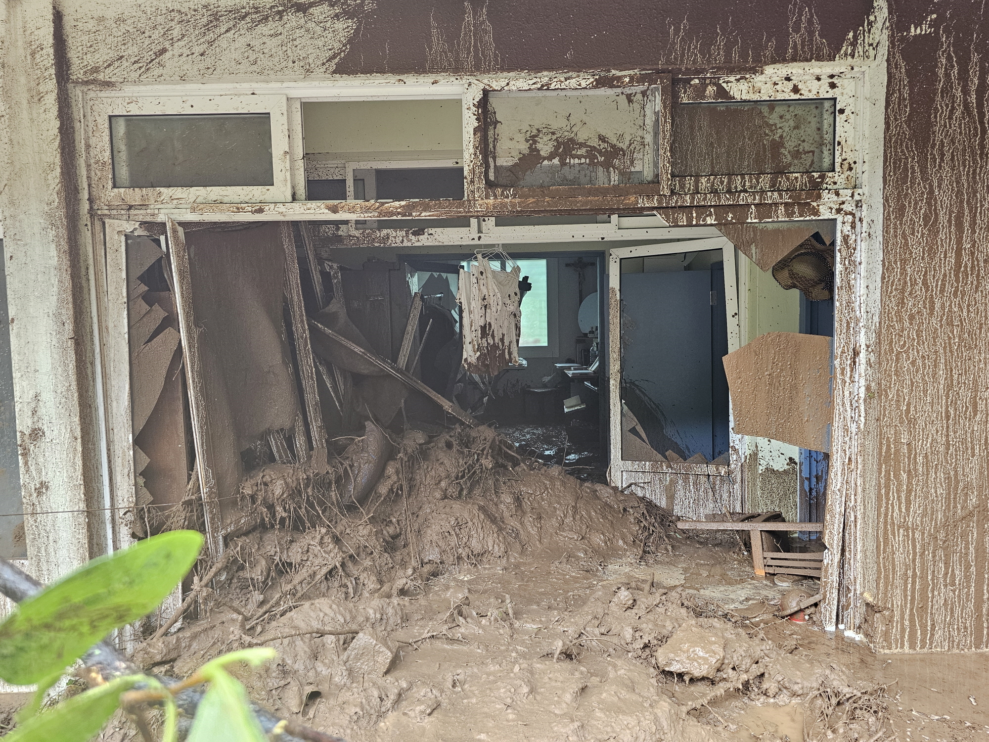 19일, 그날 아침도 김 헬레나는 여느 때와 다름없이 동료 발달장애인과 이들을 돕는 사회복지사와 함께 마늘을 까며 돼지두루치기 요리하던 중이었습니다. 산에서 흙더미가 밀려와 건물 밖에 세워둔 승용차를 덮을 때 부랴부랴 몸만 빠져나왔습니다. 졸지에 수해를 입어 체험 홈에서 생활하던 헬레나 씨를 포함한 3명은 다시 요양원으로 돌아갔습니다. 집 안까지 흙더미가 밀고 들어온 처참한 광경에도 다들 입을 다물지 못했습니다. 산사태의 위험이 사라지지 않아 기약 없이 시설에서 생활하고 있습니다.