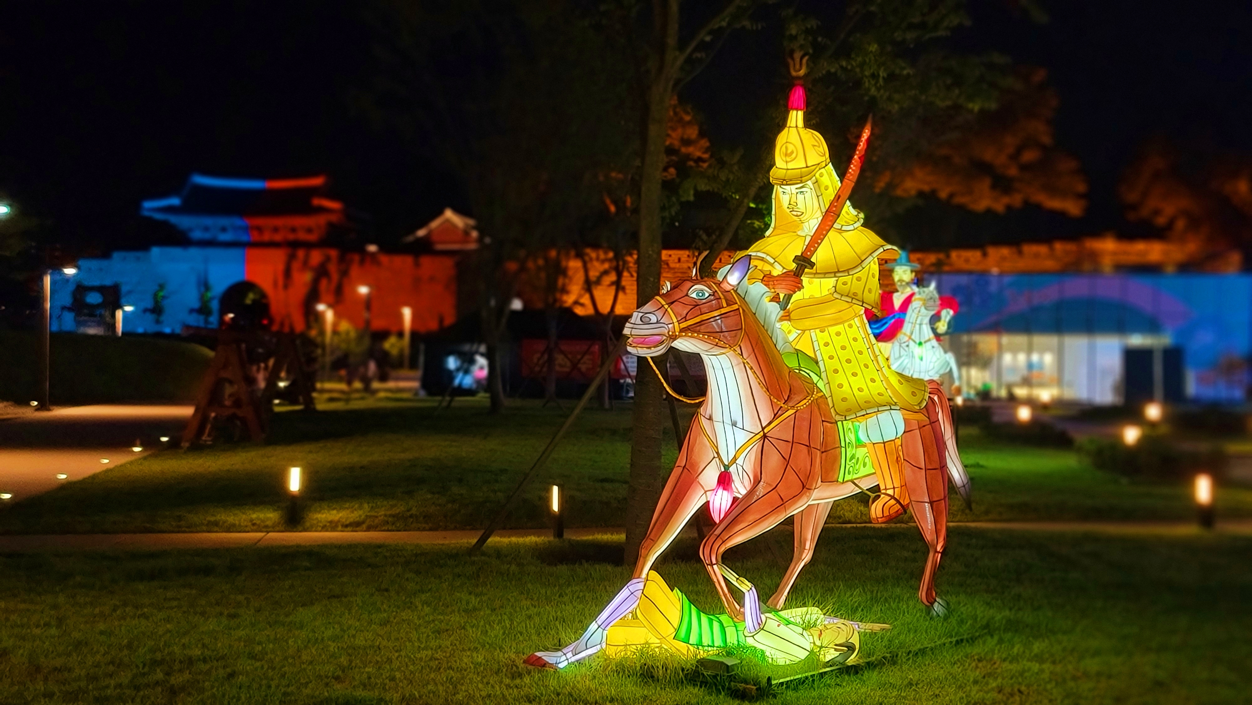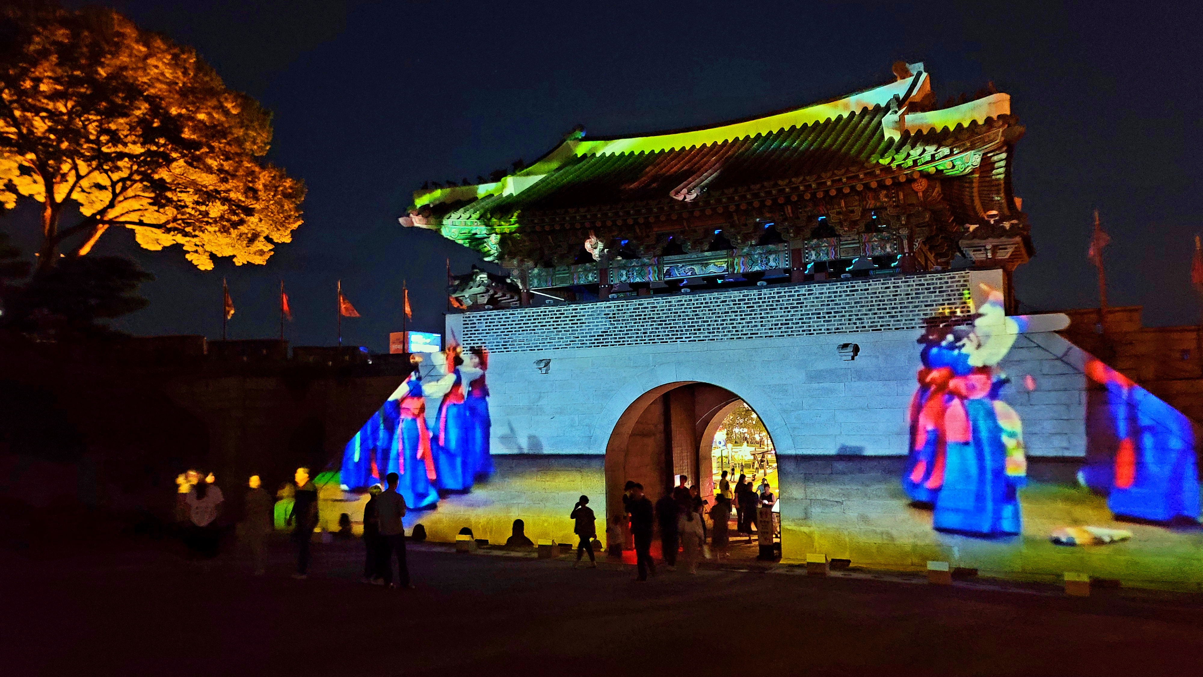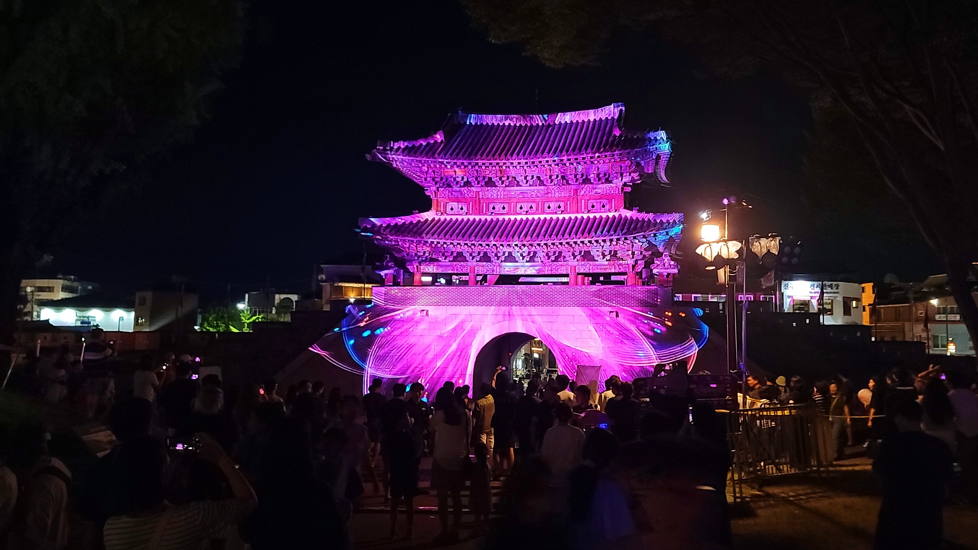 공북문을 하나의 스케치북으로 삼아 빛이 꽃처럼 아름답게 펼쳐집니다.
