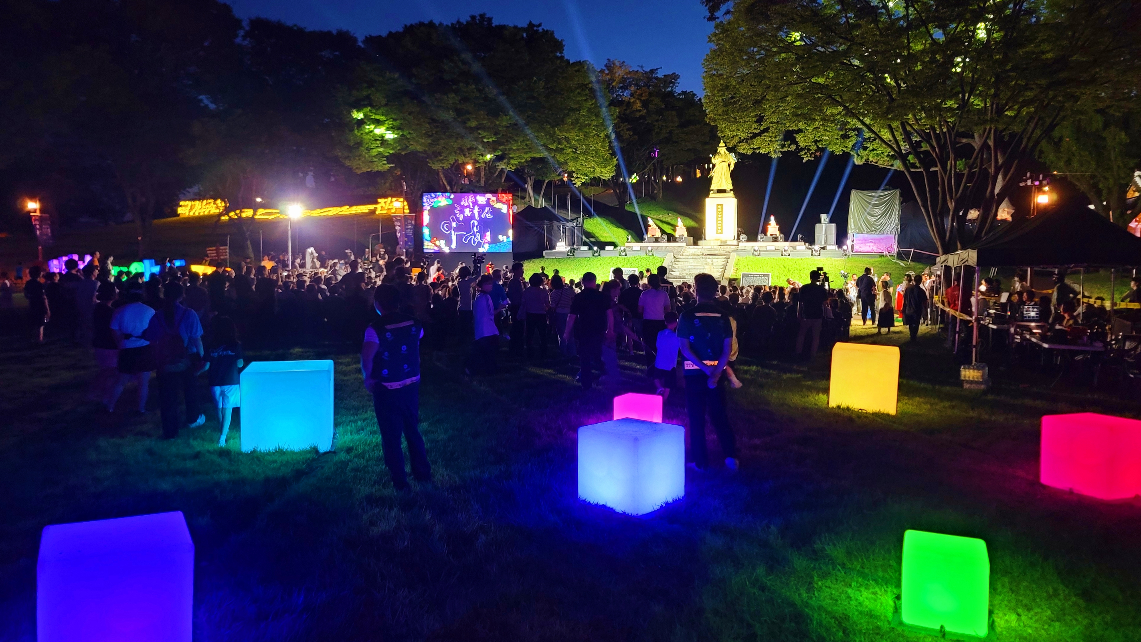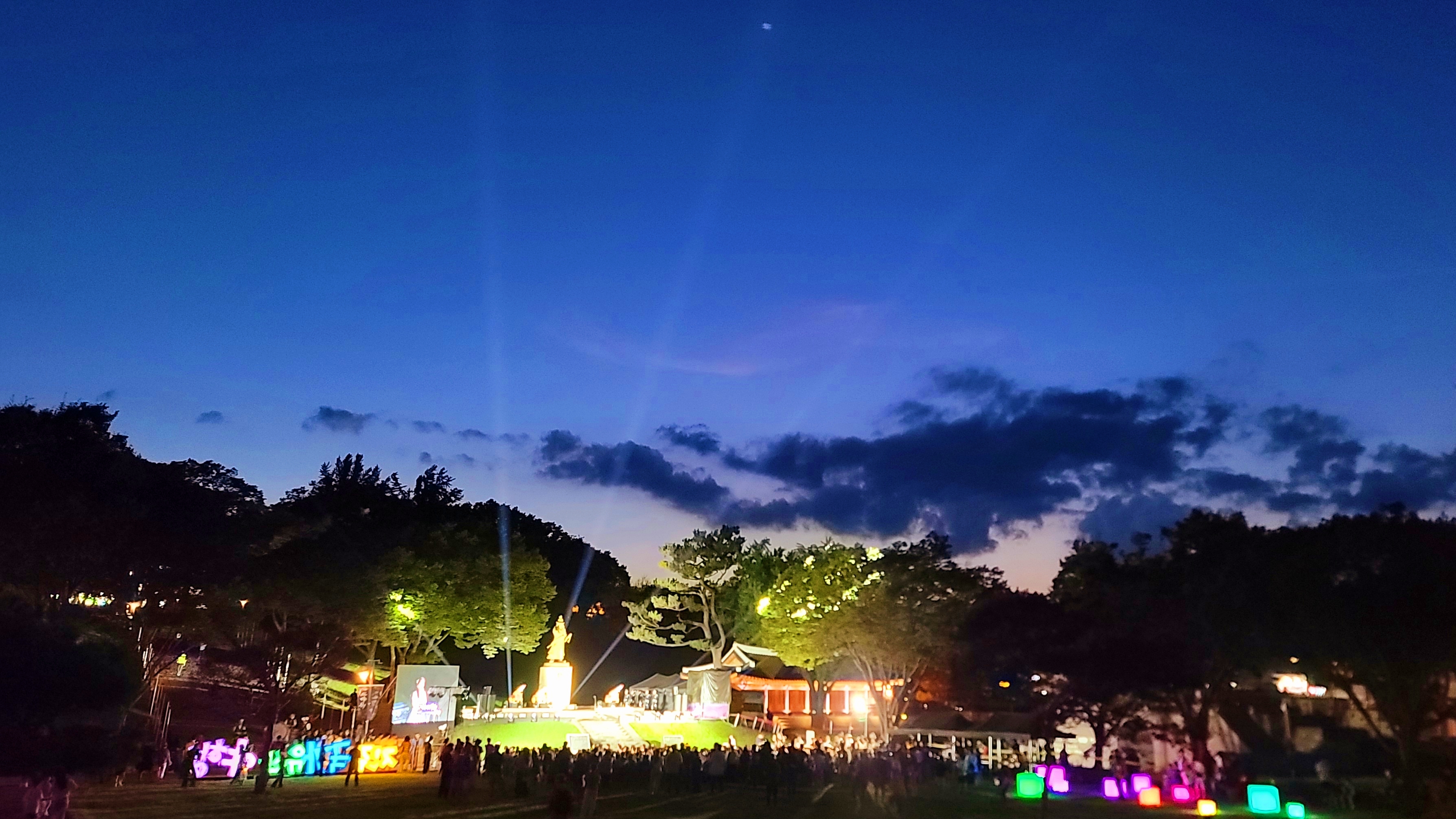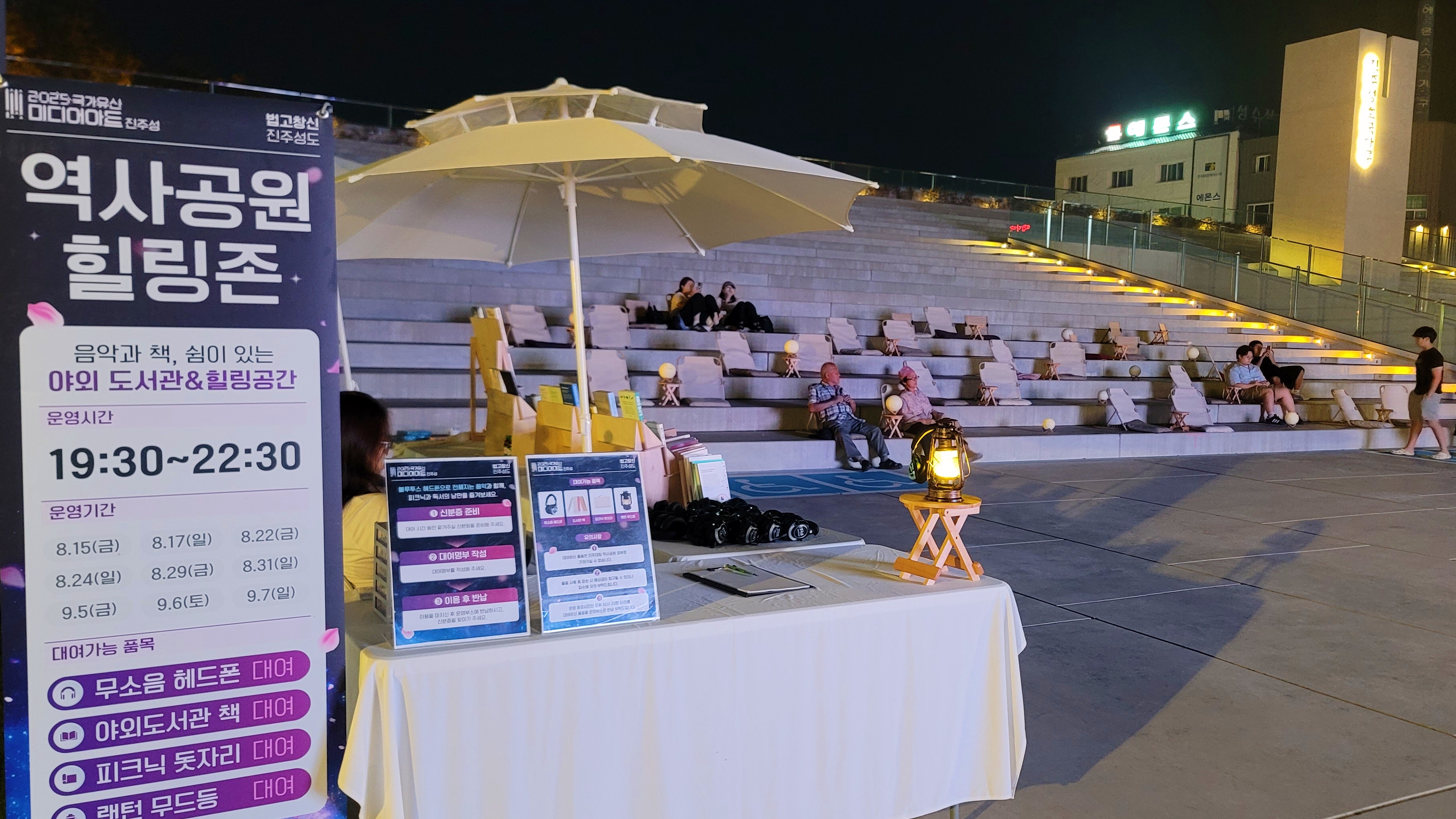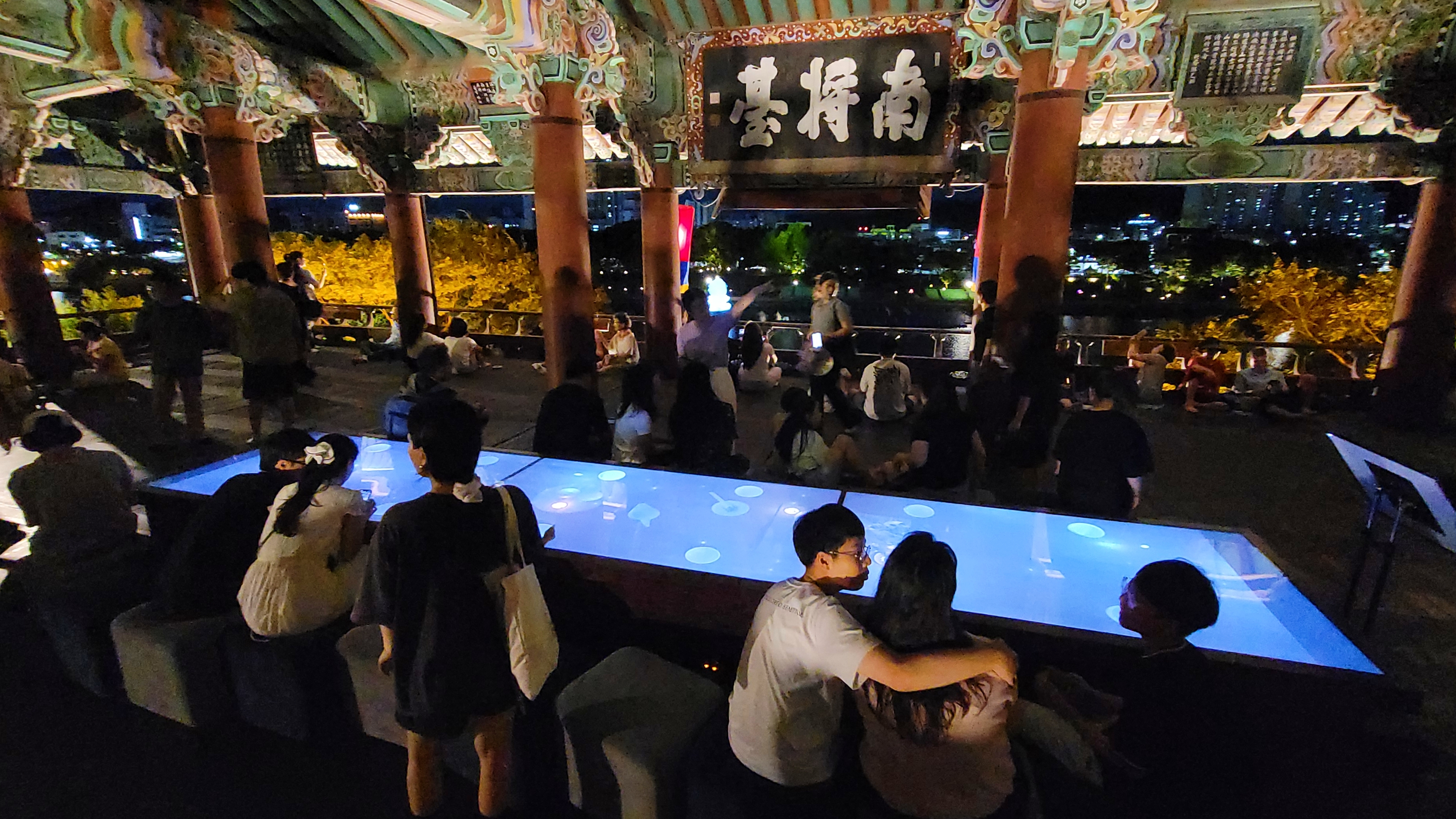 박물관 앞 마당은 낮처럼 환하게 밝힌 전등 아래 사람들이 진주검무를 배우고 아이들과 블록을 쌓기에 바쁩니다. 실수해도 웃고, 그저 바라보면서도 웃는 웃음꽃이 곳곳에서 피어납니다.