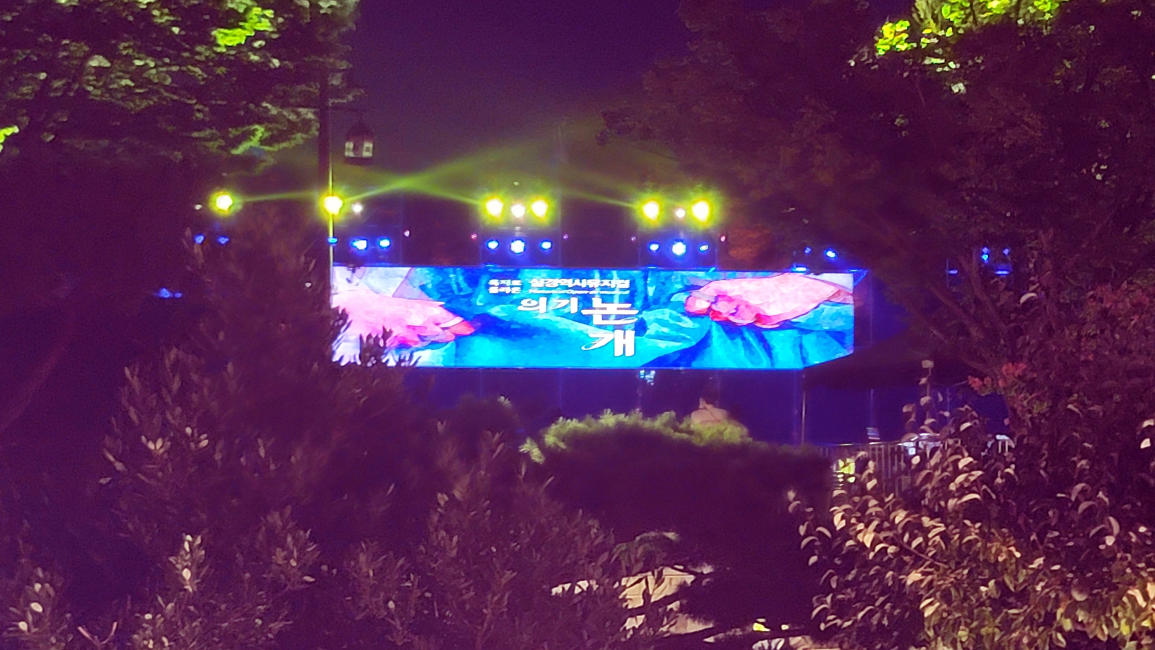임진계사순의단 앞에서의 실지 풍경 역사 뮤지컬 <의기 논개> 공연이 한창입니다.