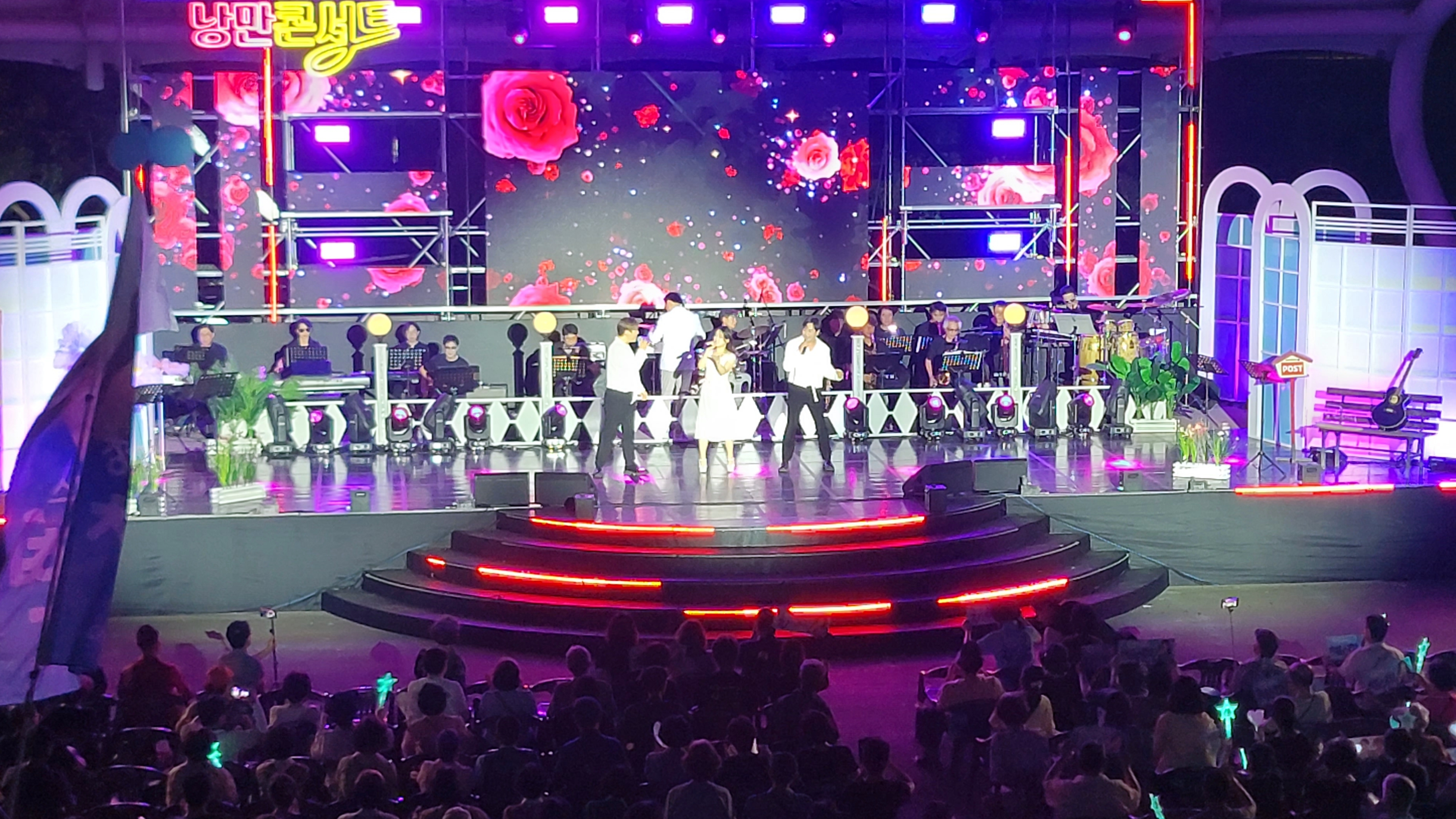 이어서 채수현이 이들과 함께 노래 ‘밤에 피는 장미’를 부릅니다. 밤에 곱게 피는 장미처럼 무대와 주위는 장미향이 넘실거리듯 향기롭습니다.