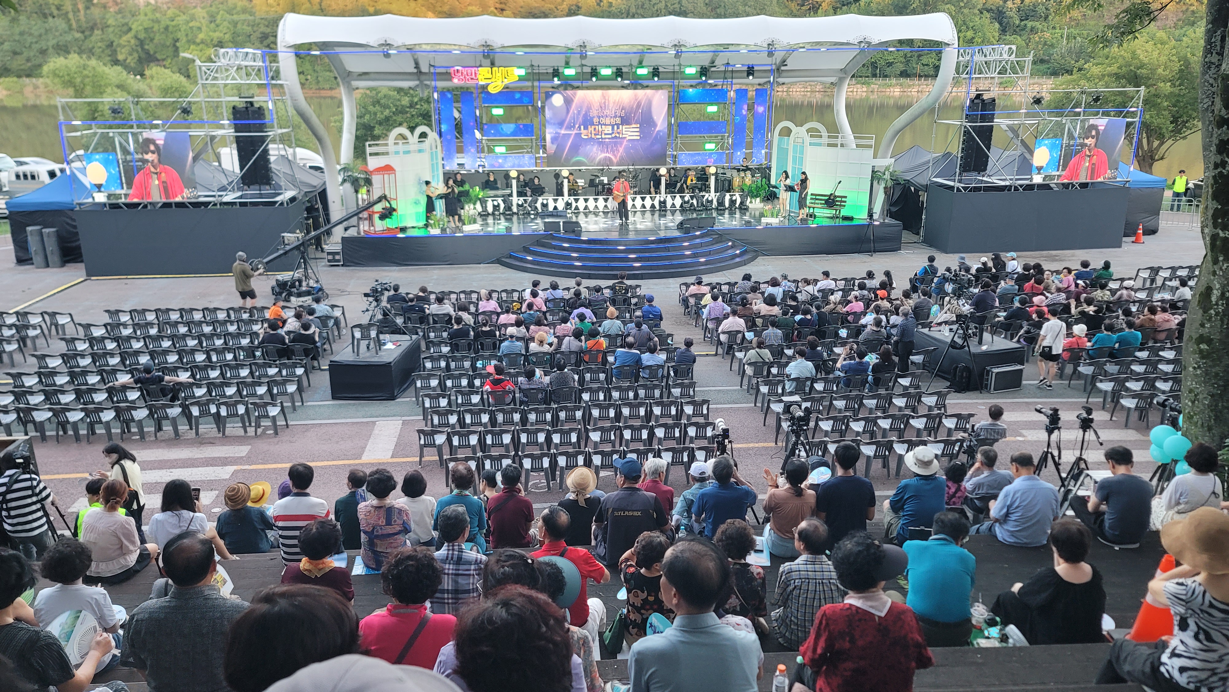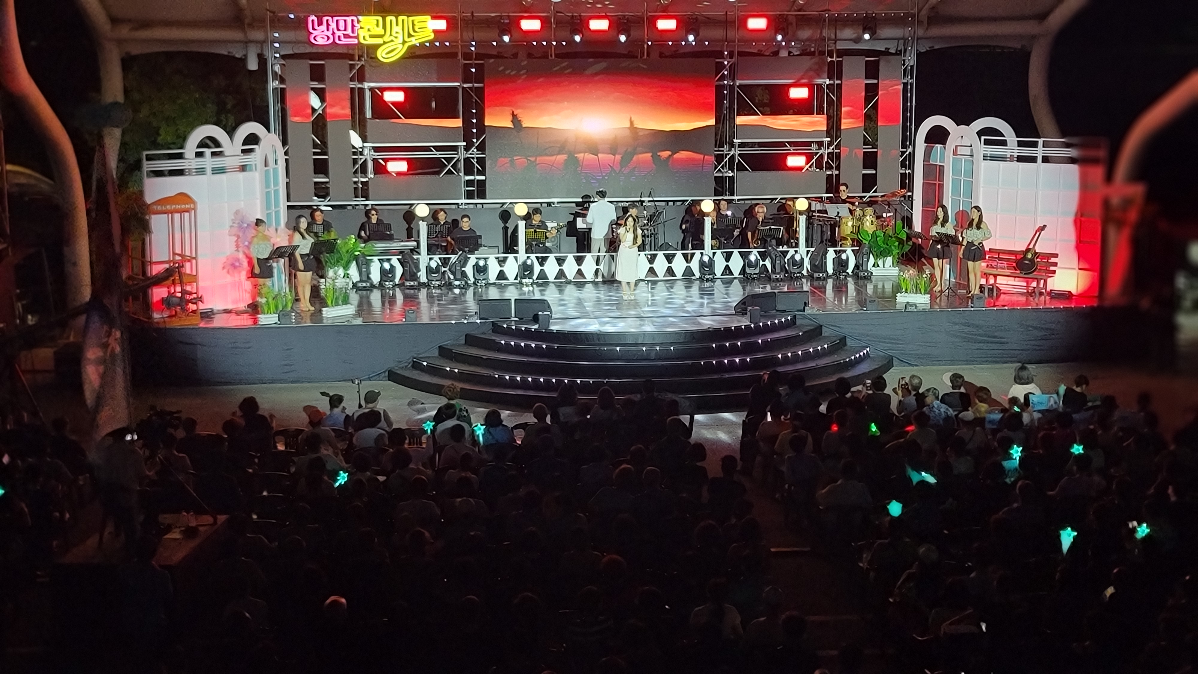 서로 부채질을 하며 덩달아 장단 맞추는 관객들까지 모두가 아름답고 평화롭습니다. 어둠이 깔리고 조명에 빛이 들어오면 본격적으로 감미로운 낭만의 선율이 흐를 그때를 기다립니다.