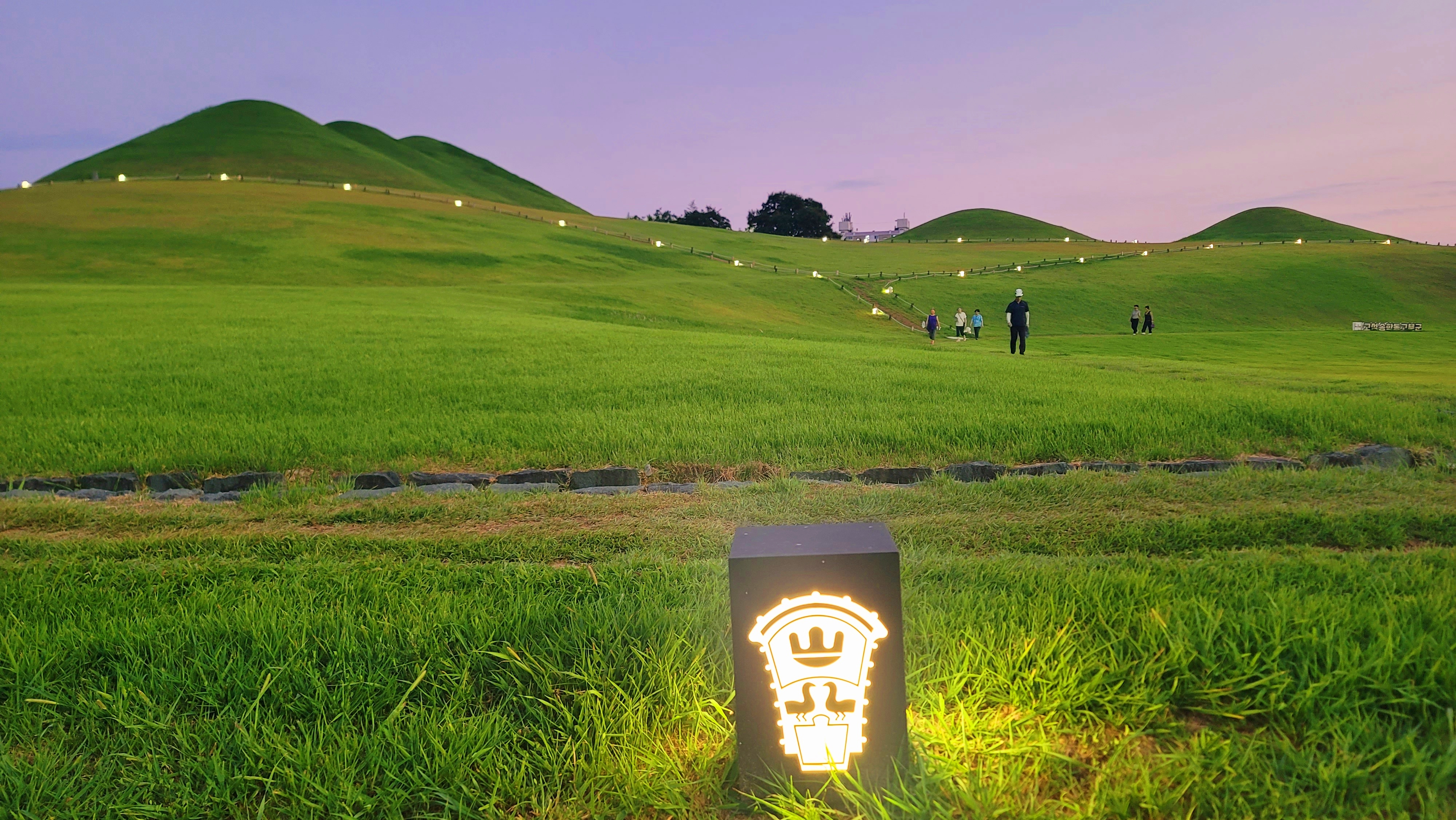 오후 6시 40분쯤, 가로등에 빛이 들어옵니다. 사람들이 고된 하루의 일상을 마감하고 집으로 돌아가 숨을 고르는 시간이 다가왔습니다. 여기저기 산책을 나온 듯 다양한 사람들이 고분군을 탑돌이 하듯 산책합니다.