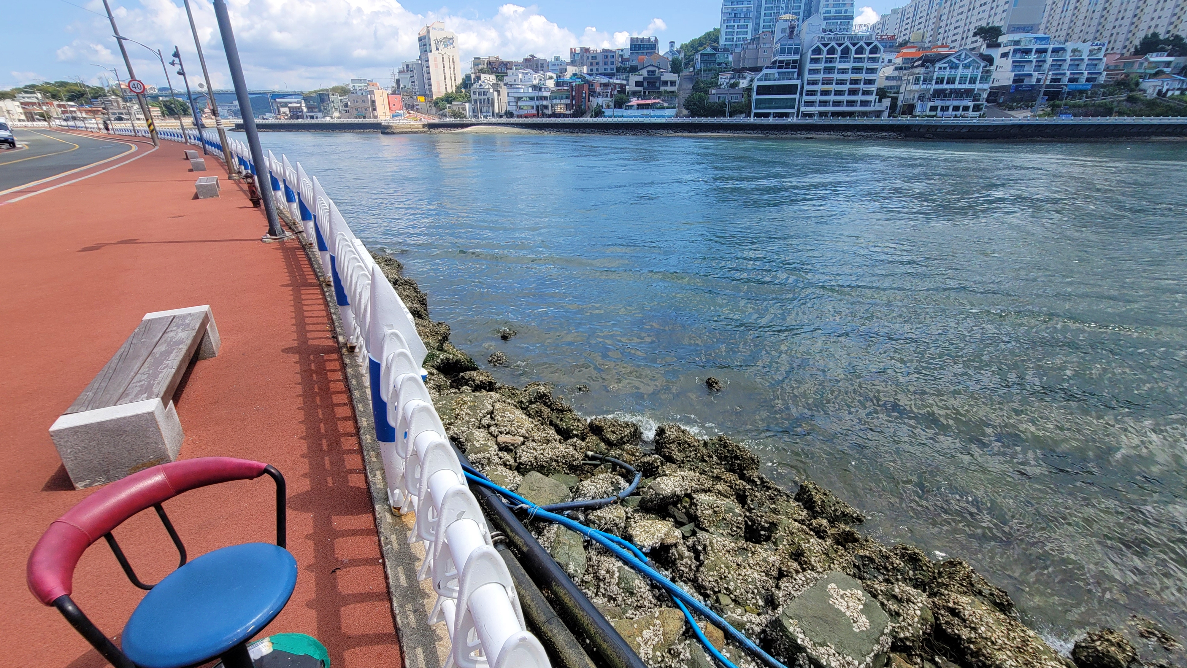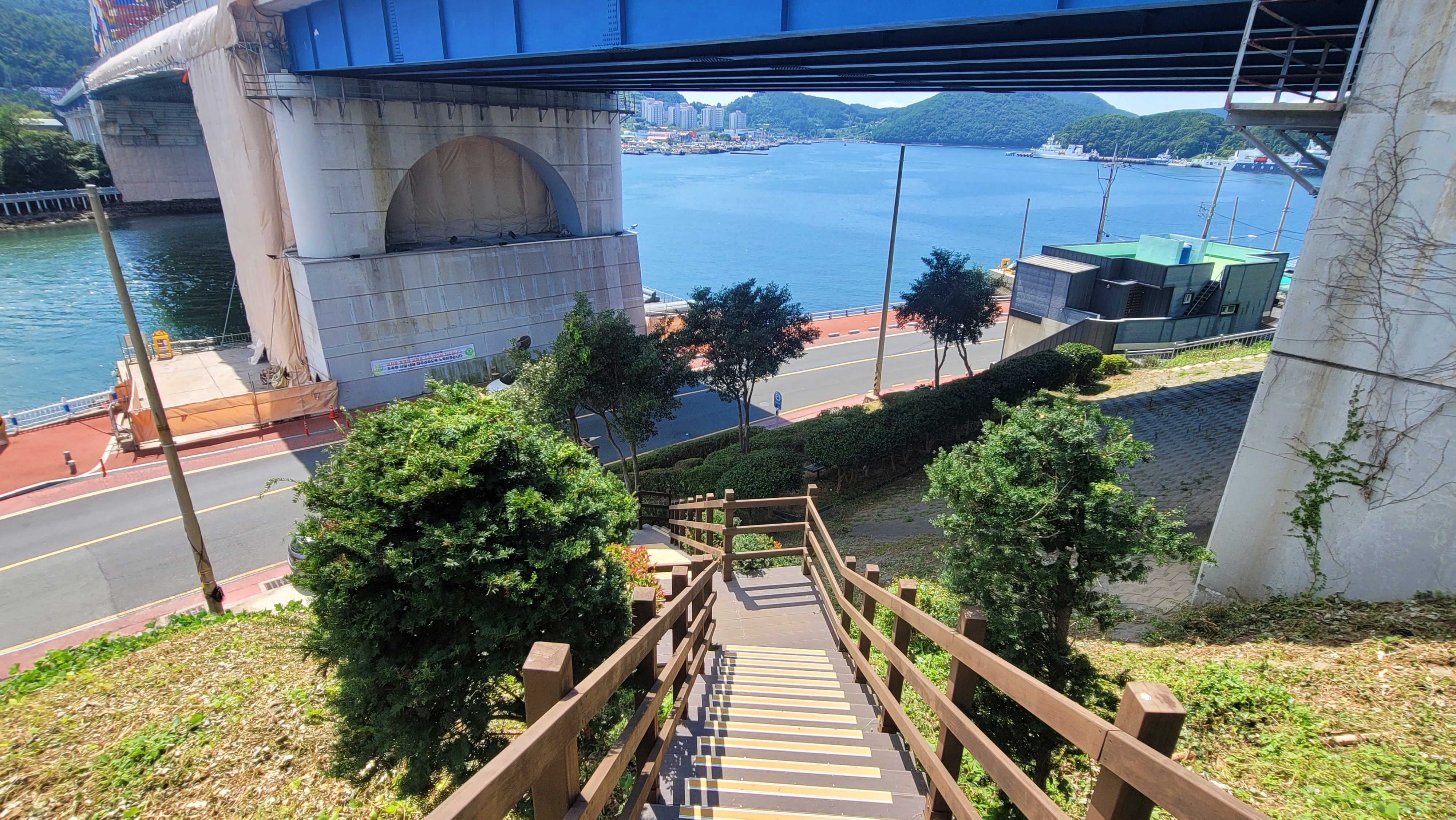 하지만 다리 바로 아래 벤치에 잠시 앉아 멍때리듯 바다를 바라봅니다. 잔잔한 물결이 일상 속 번뇌를 스르륵 사라지게 합니다.