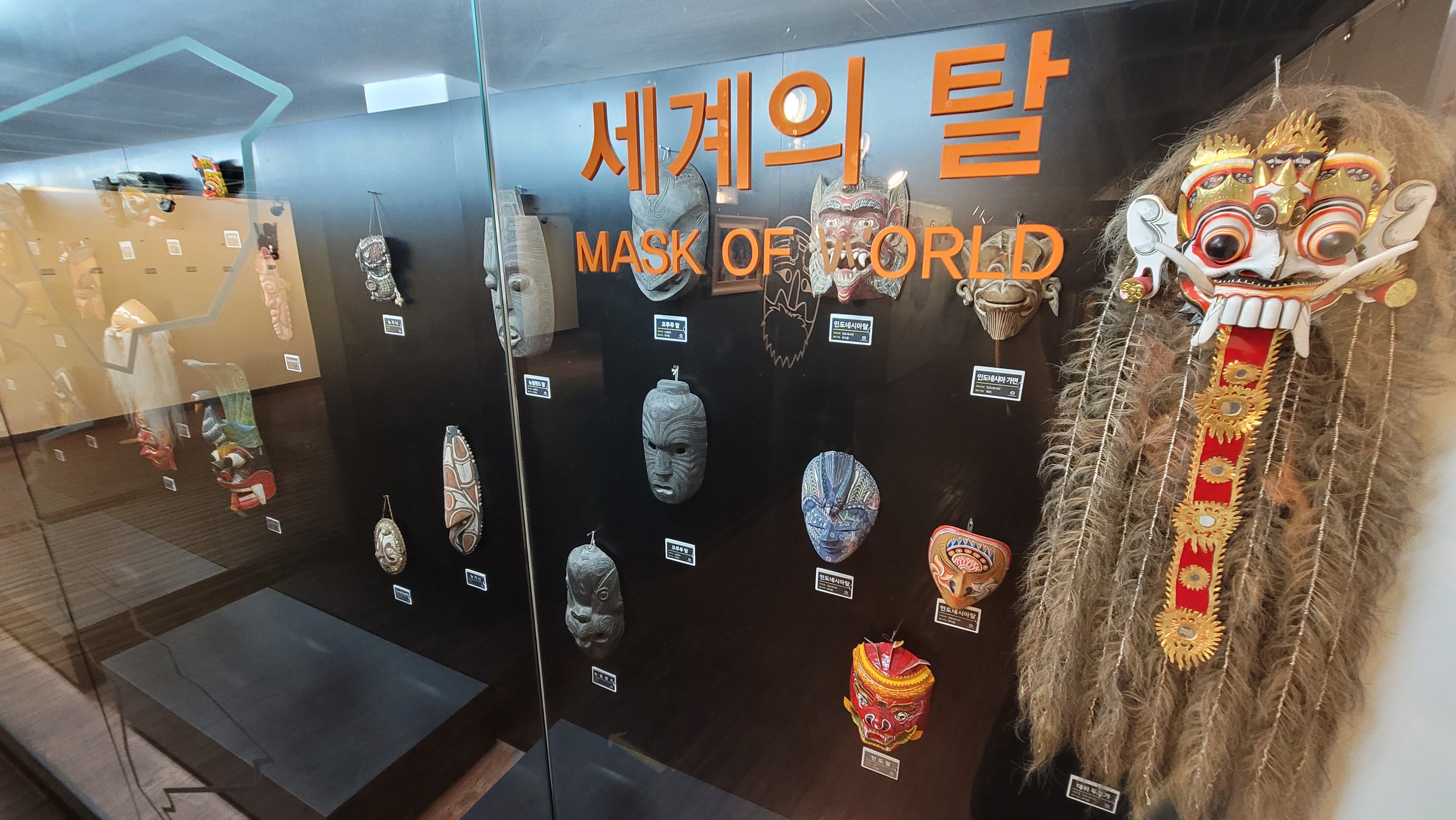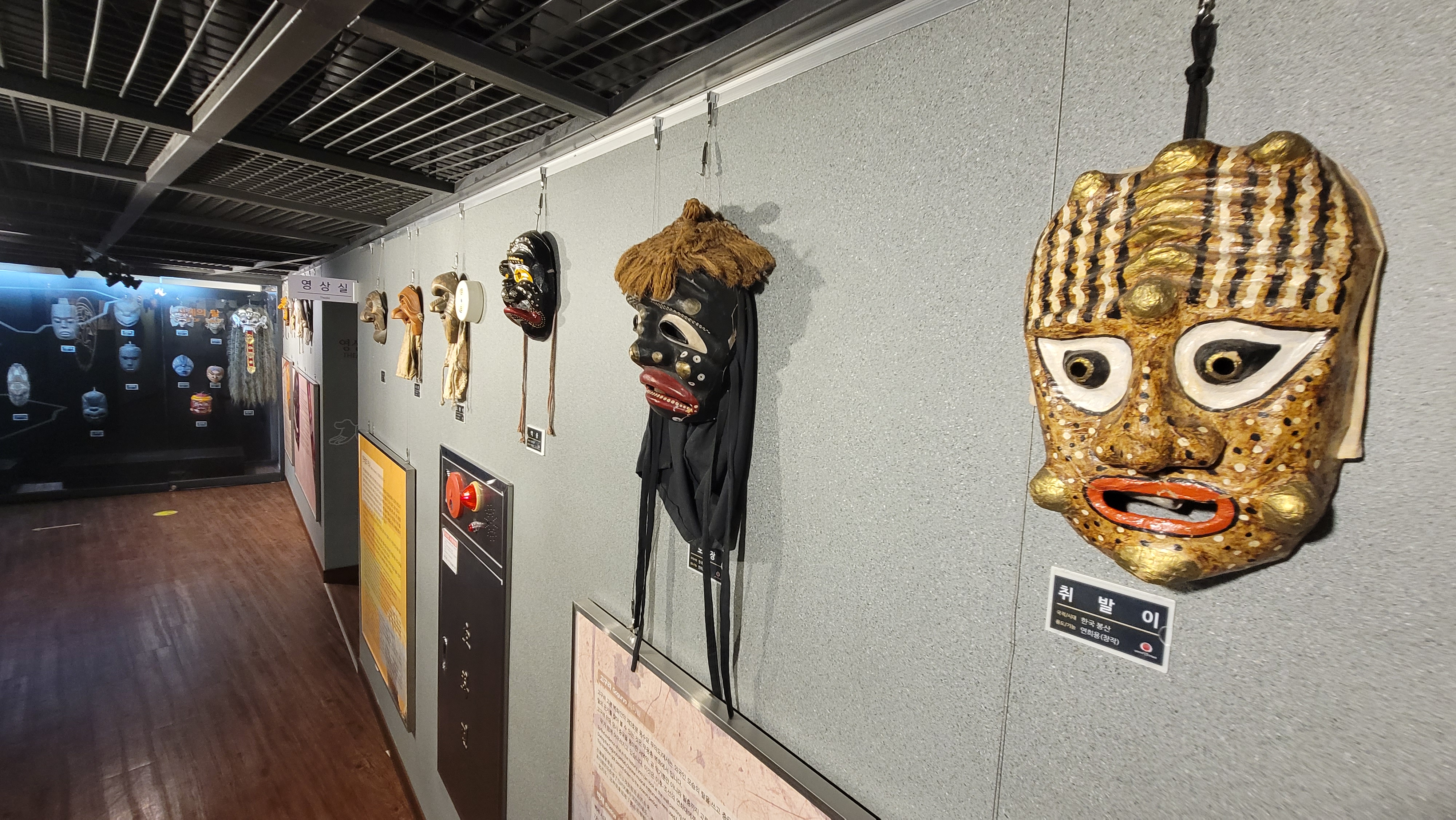 이들 곁을 떠나 전시실이 있는 2층으로 향했습니다. 여기 탈박물관은 소장품이 소박합니다. 여느 박물관처럼 국보니 보물이니 하는 문화유산보다는 그저 탈을 이해하는 공간입니다. 따라서 국립박물관과 고성탈박물관 등을 생각하고 이곳을 찾는다면 실망이 클 수도 있습니다.