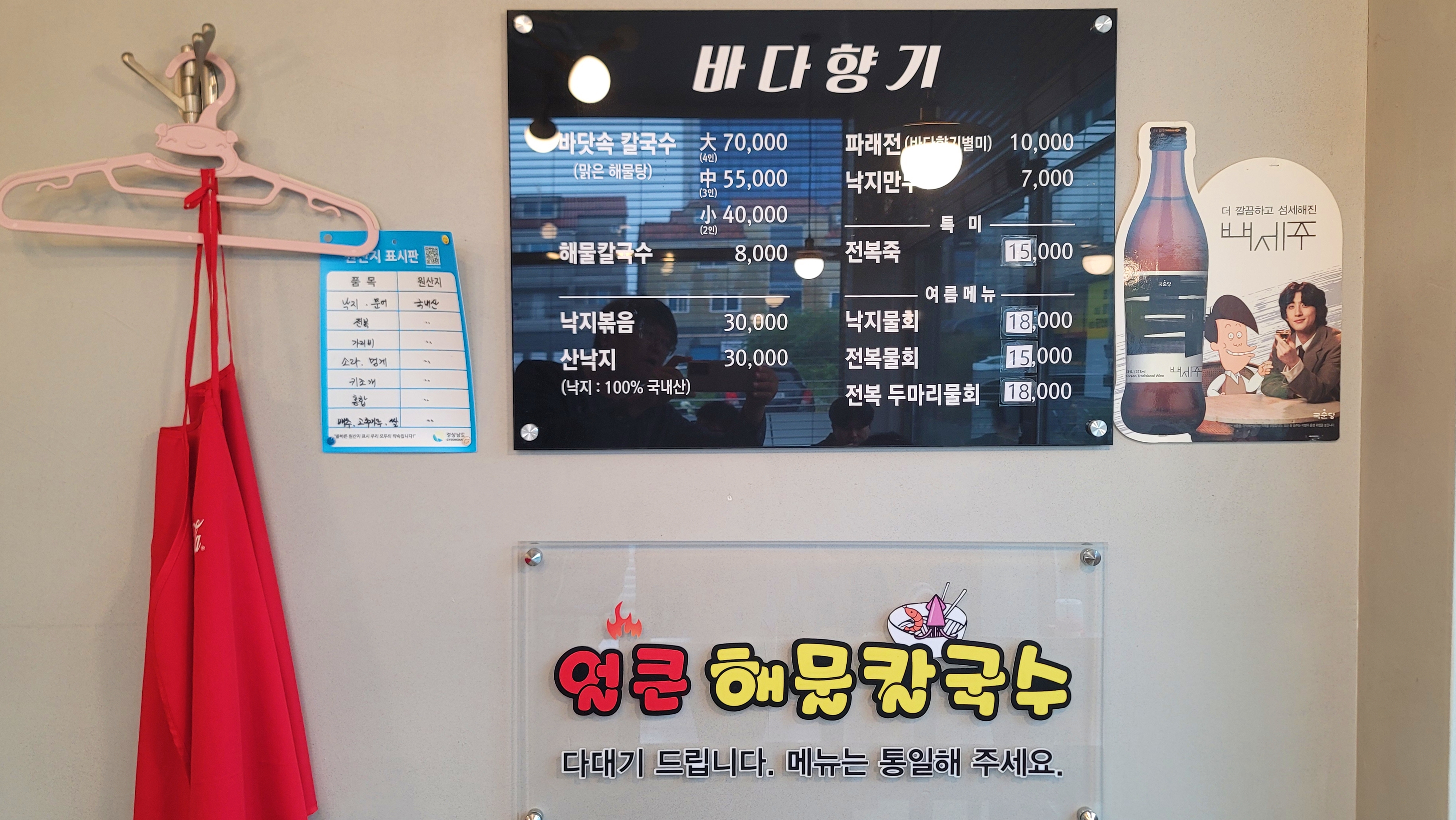 바닷속 칼국수(맑은 해물탕) 큰 것(大)을 주문했습니다. 곁들여 낙지만두 하나도 추가했습니다.
