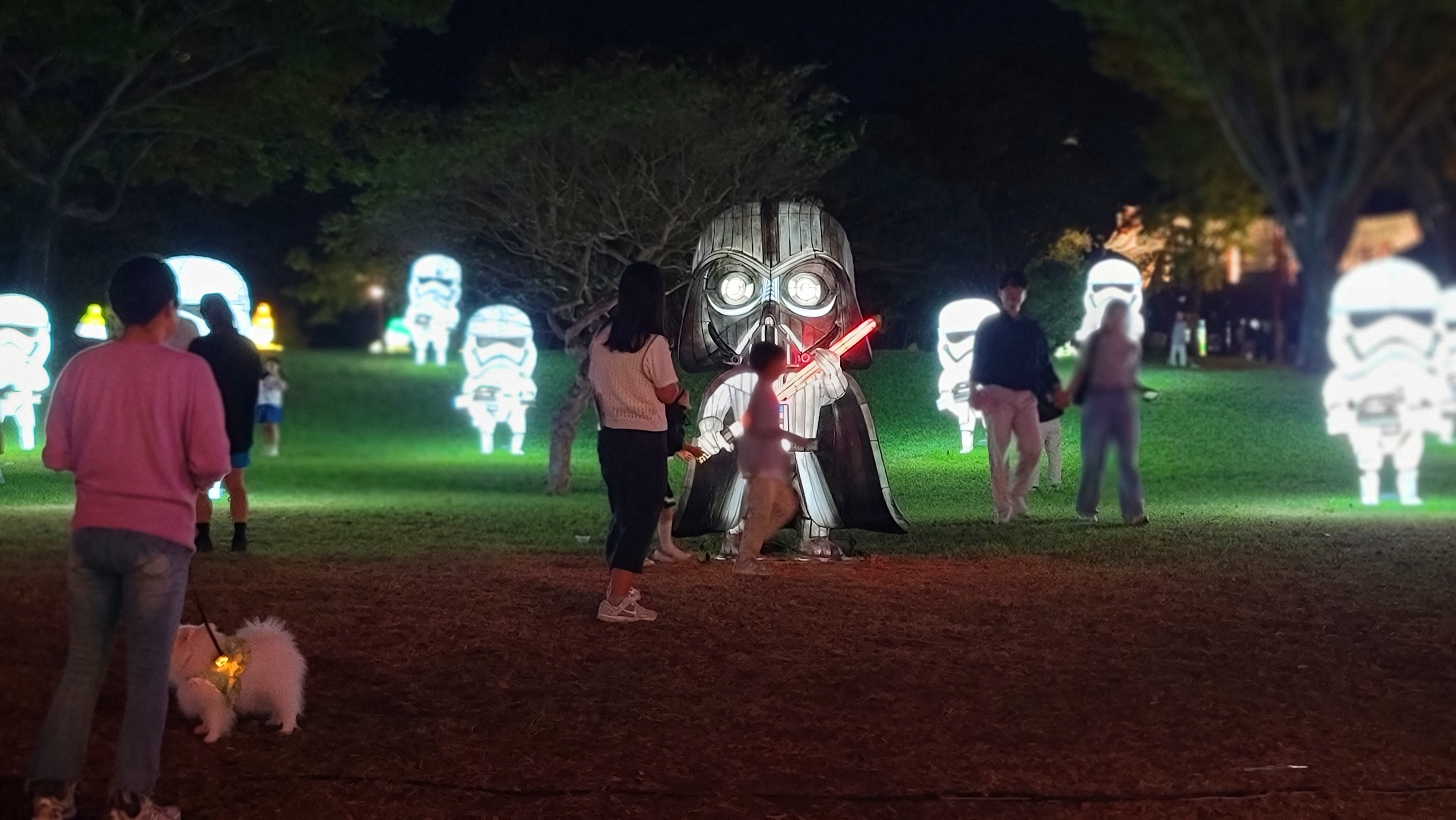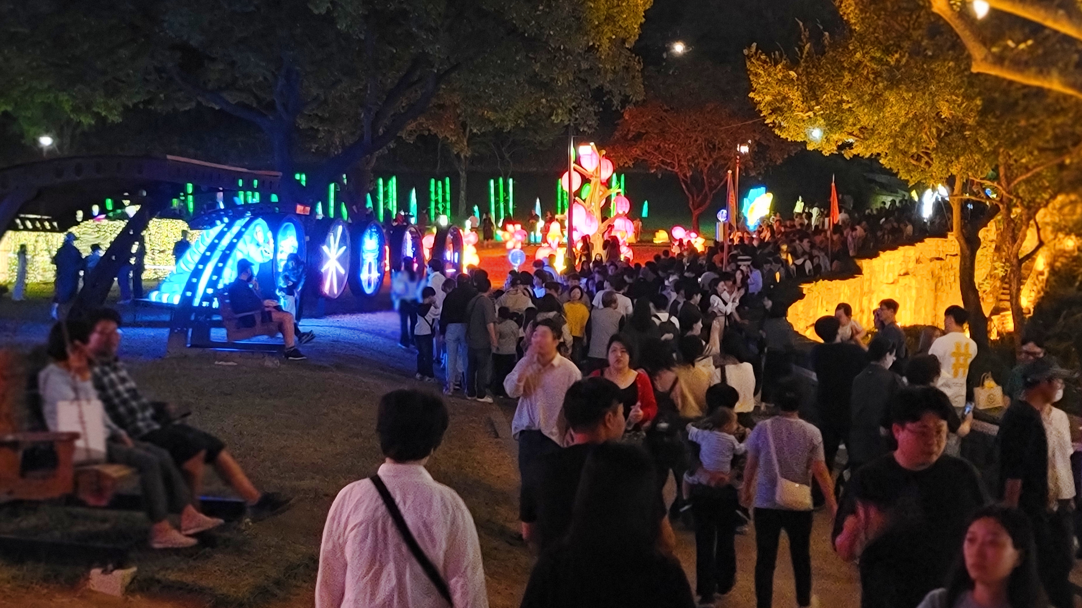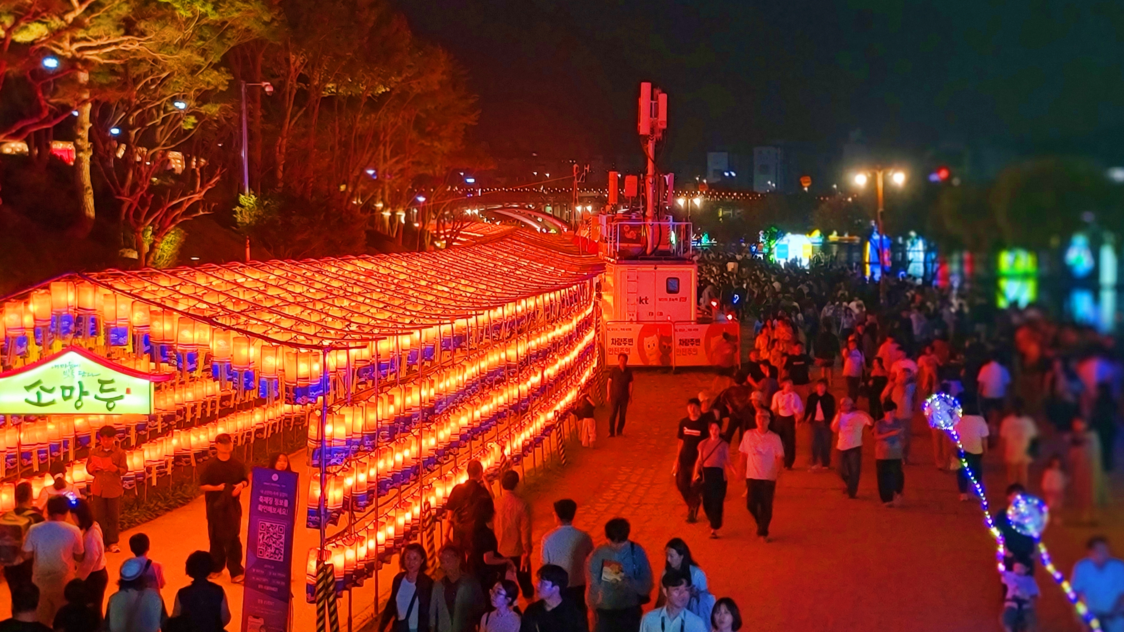 걸음을 쉬이 옮길 수 없습니다. 두 눈에 담고도 넘치는 풍광을 휴대전화에 담기에 바쁩니다. 혼자 보기에는 너무나 아쉬워 가족에게, 지인에게 카카오톡으로 전송하기에 겨를이 없습니다. 더구나 여기저기에서 유등을 배경으로 사진을 찍으려는 이들을 피해 가느라 걸음은 즐겁게 더딜 수 밖에 없습니다.