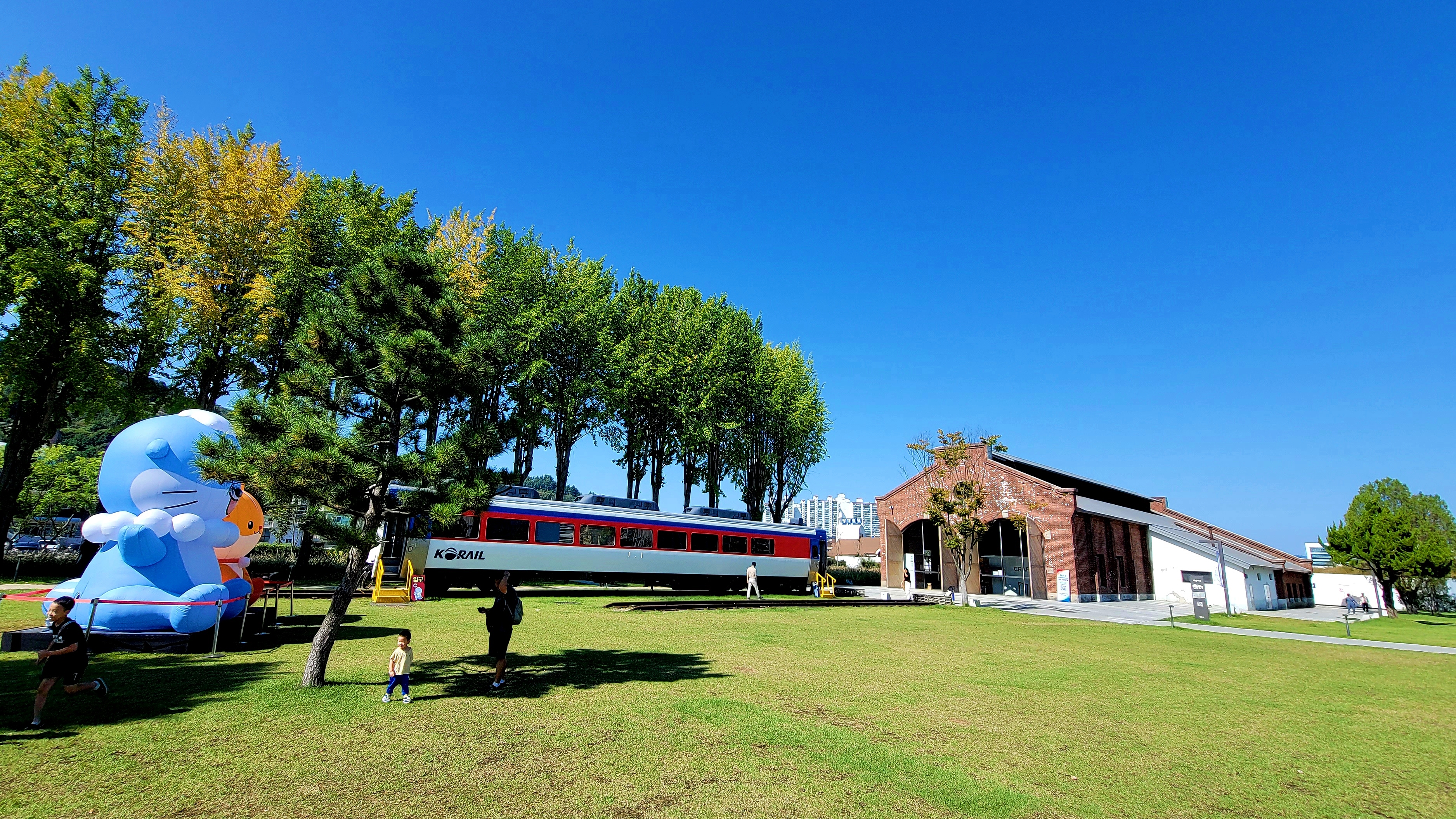 촉석루를 내려와 솔방울 부자 빵도 시식하고 진주대첩 광장을 돌았습니다. 옛 진주역은 철도문화공원으로 바뀌었습니다. 진주성 안에 있는 국립진주박물관도 2028년 여기로 이전 건립을 위해 공사 중입니다.