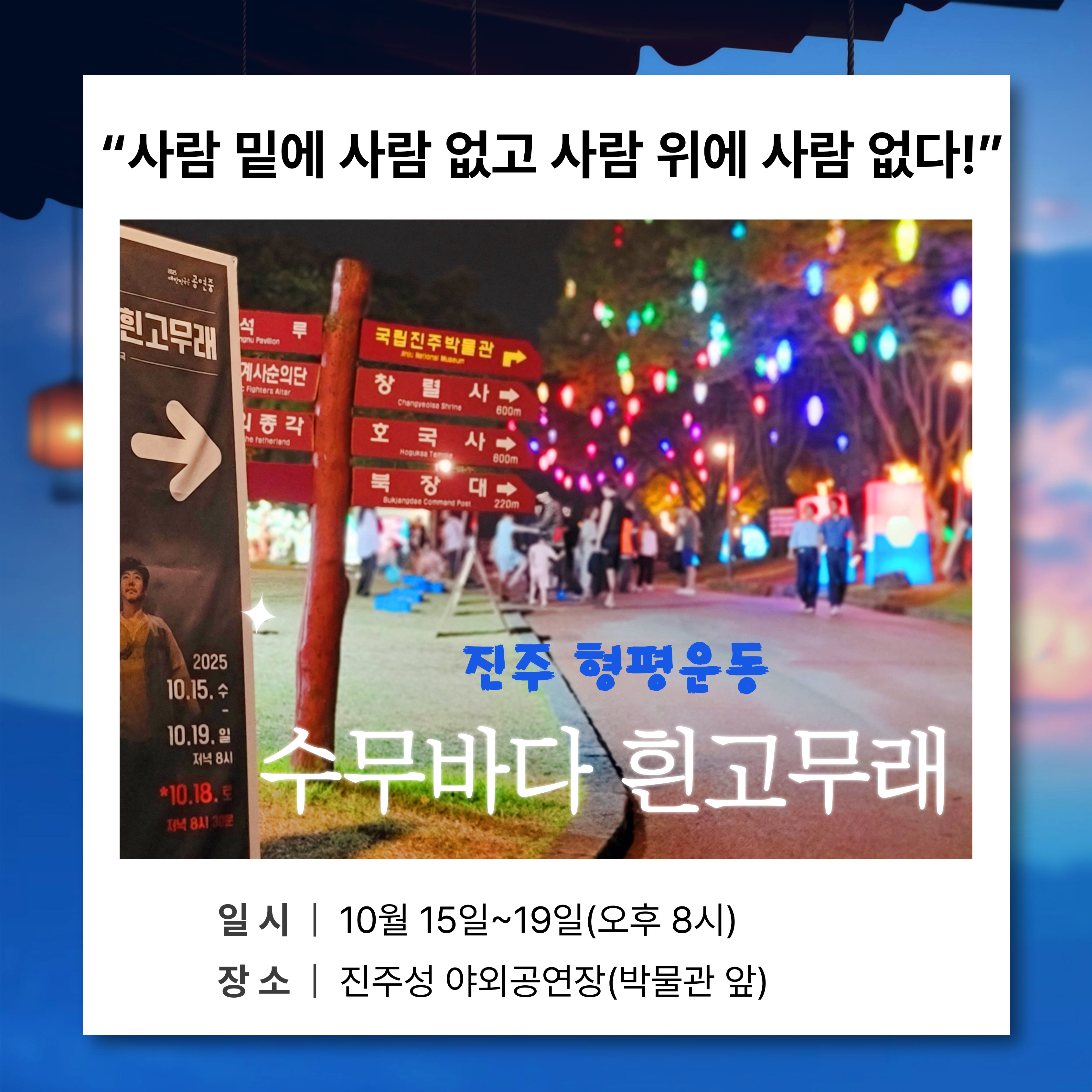 #진주개천예술제 #진주남강유등축제 #코리아드라마페스티벌 #형평운동 #진주정신 #인권운동 #수무바다흰고무래 #마당극 #백정 #백촌강상호 #진주성 #진주가볼만한곳 #진주여행