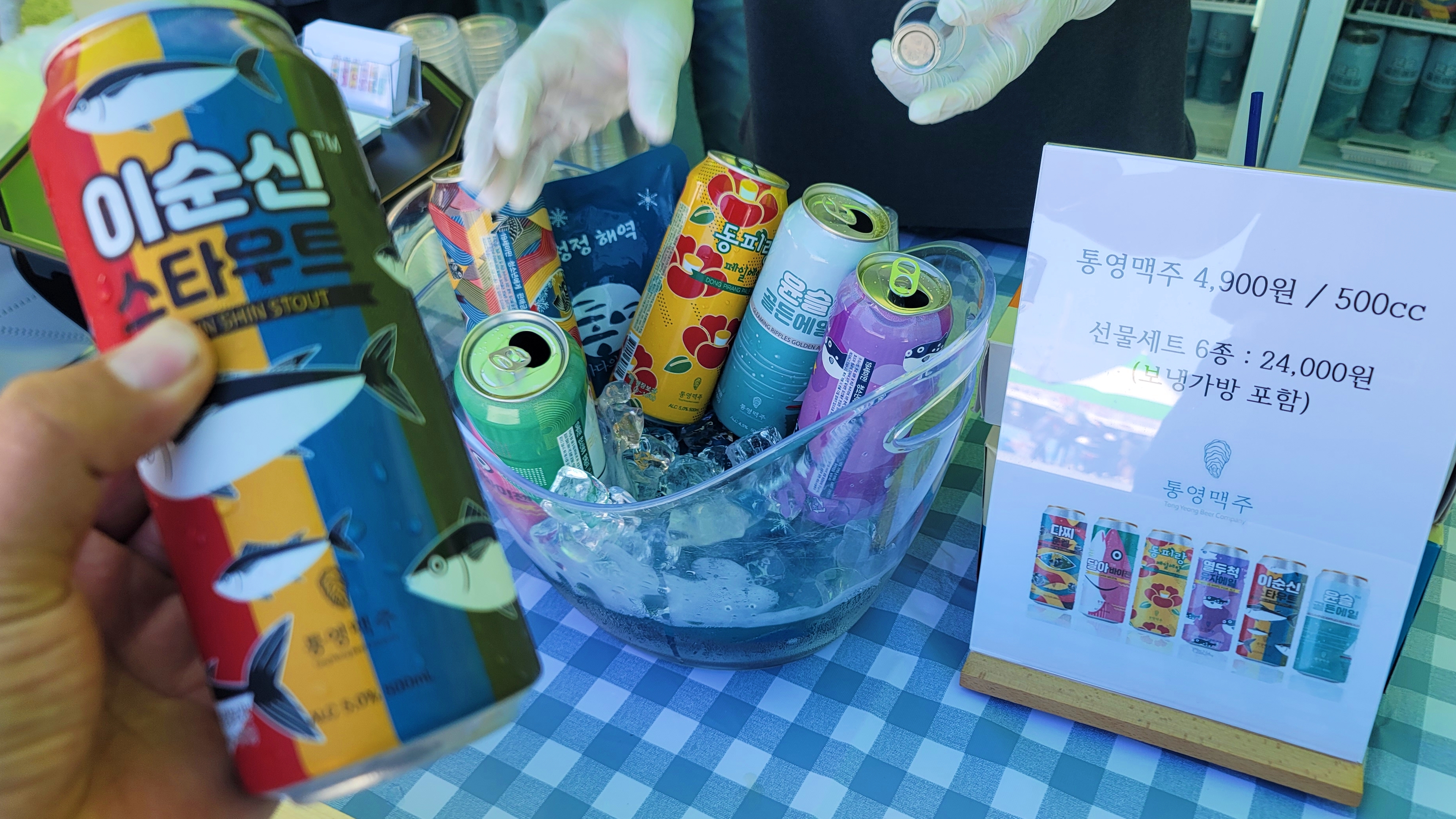 애주가들이 좋아할 통영 맥주와 욕지도 특산품인 고구마로 만든 고구마 막걸리 등도 있습니다. 보냉 용기에 담아 줘서 들고 다녀도 그만입니다.