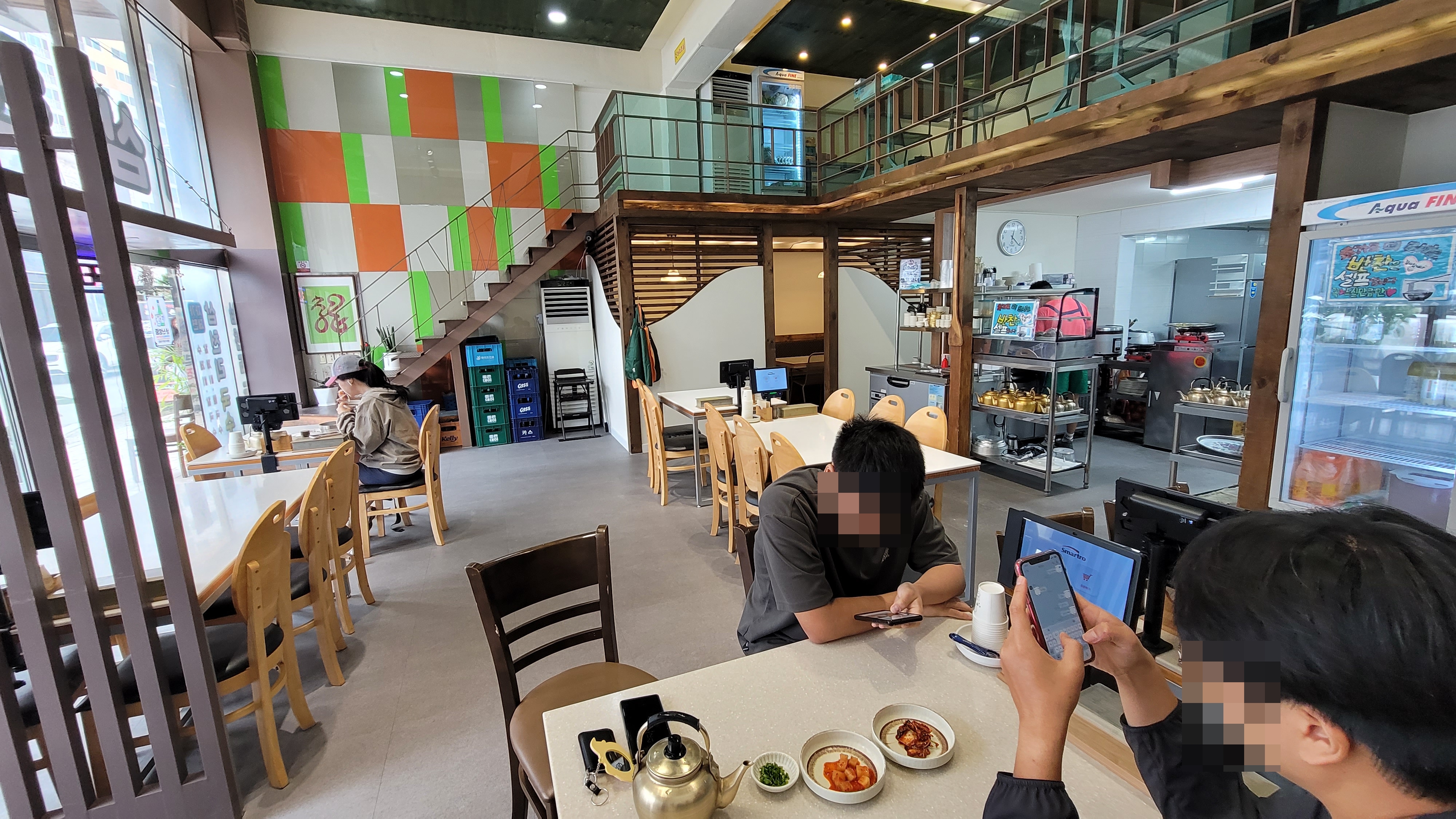 서부시장이라는 공간이 아닌 덕분에 외양은 더욱 깔끔합니다. 아내는 칼제비를 저와 아이들은 칼국수를 시켰습니다. 아울러 김밥도 곁들였습니다. 주문은 키오스크로 합니다.