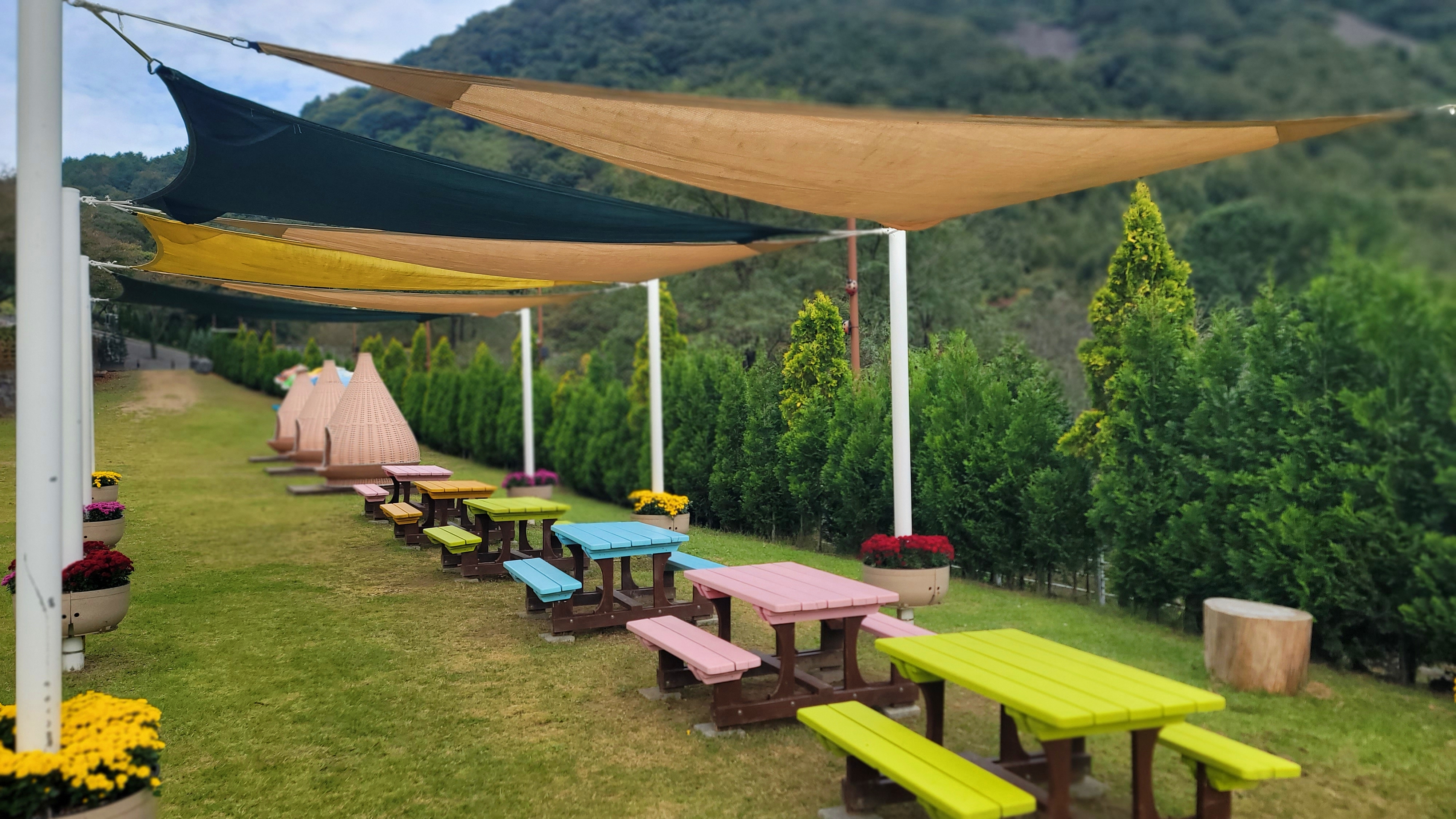연못 곁을 지나 야외무대가 있는 잔디밭으로 향합니다. 고깔 모양의 쉼터에 몸을 뉩니다. 눈을 감자 세상의 평화가, 평온이 밀려옵니다.