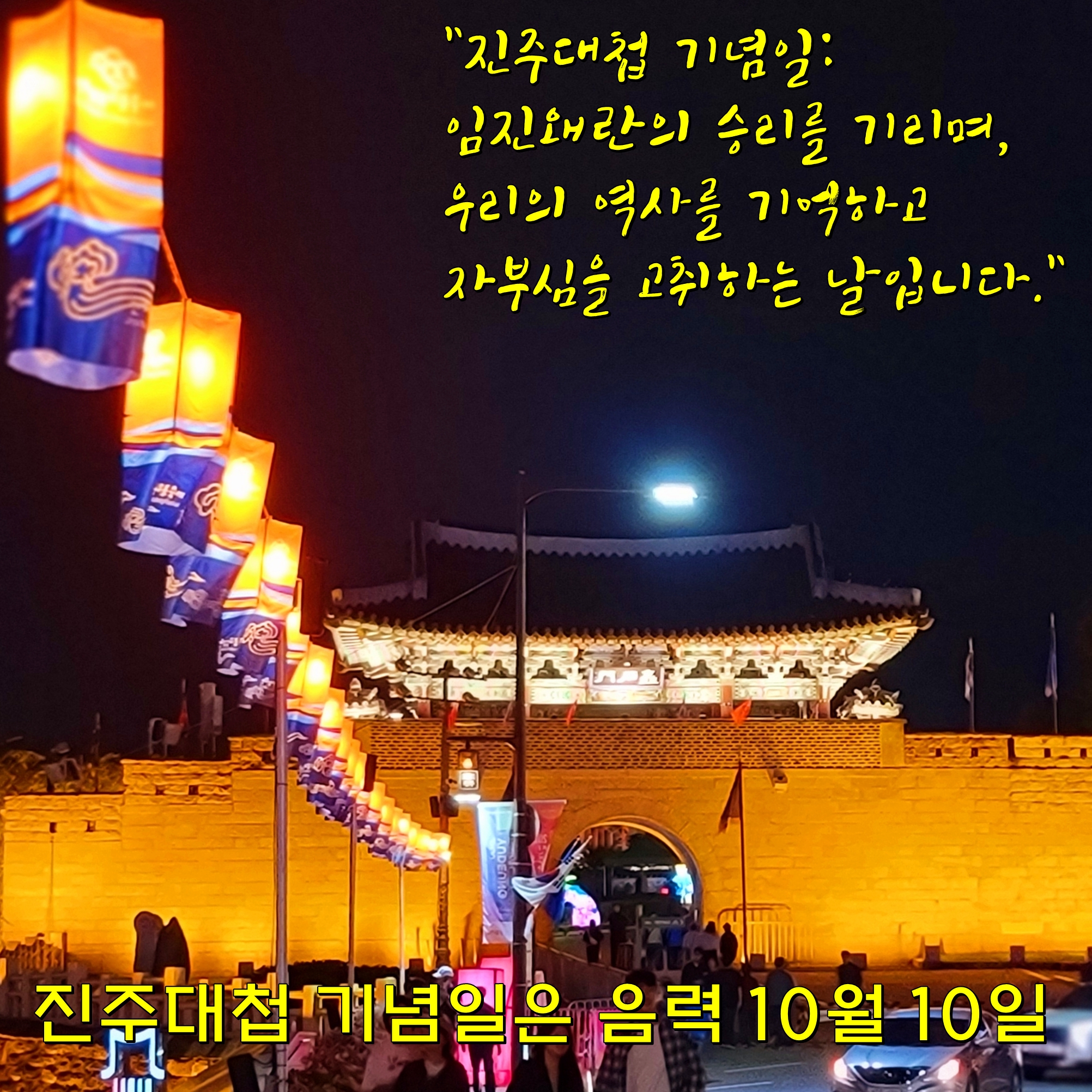 "진주대첩 기념일: 임진왜란의 승리를 기리며, 우리의 역사를 기억하고 자부심을 고취하는 날입니다."