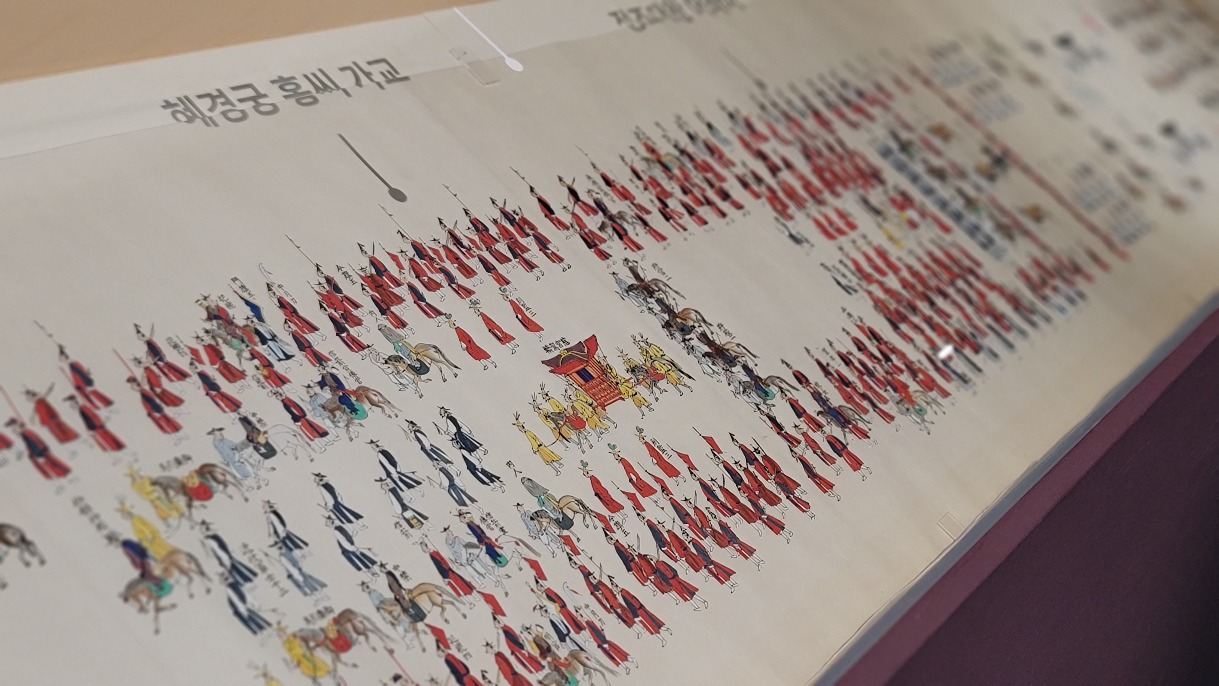 전시장에 들어서자 ‘혜경궁 홍씨 가교도’가 벽면을 따라 길게 펼쳐져 있었다. 색색의 행렬 속 인물 하나하나가 살아 움직이는 듯했고, 첫째는 그 작은 얼굴들에 오래 시선을 걸었다.
