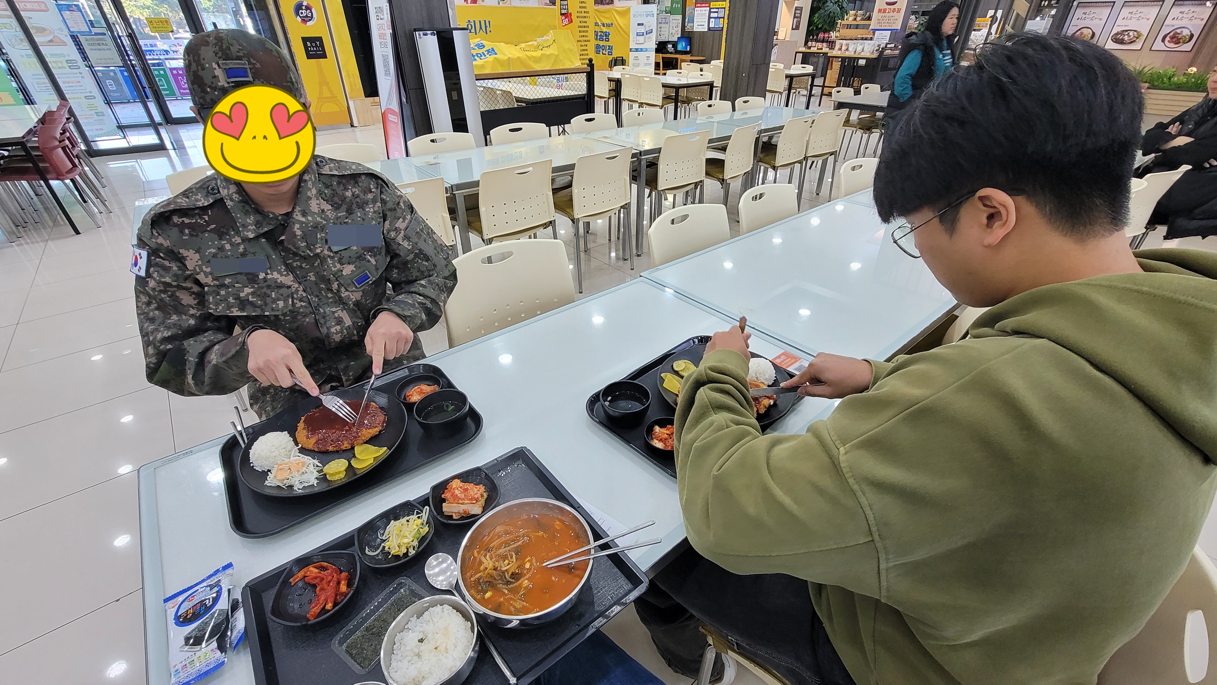 휴게소 식당에 마주 앉아 돈가스를 조용히 써는 녀석의 손끝에는 긴장보다 책임감이 먼저 보였다. 군복 소매 아래로 드러난 손목이 어느새 성숙해진 듯했다. 첫째는 돈가스를 같이 먹으며 말없이 동생의 마음을 다독였다. 조용한 밥상 위에서, 아버지와 두 아들의 마음은 작은 숨결처럼 서로를 감싸고 있었다.