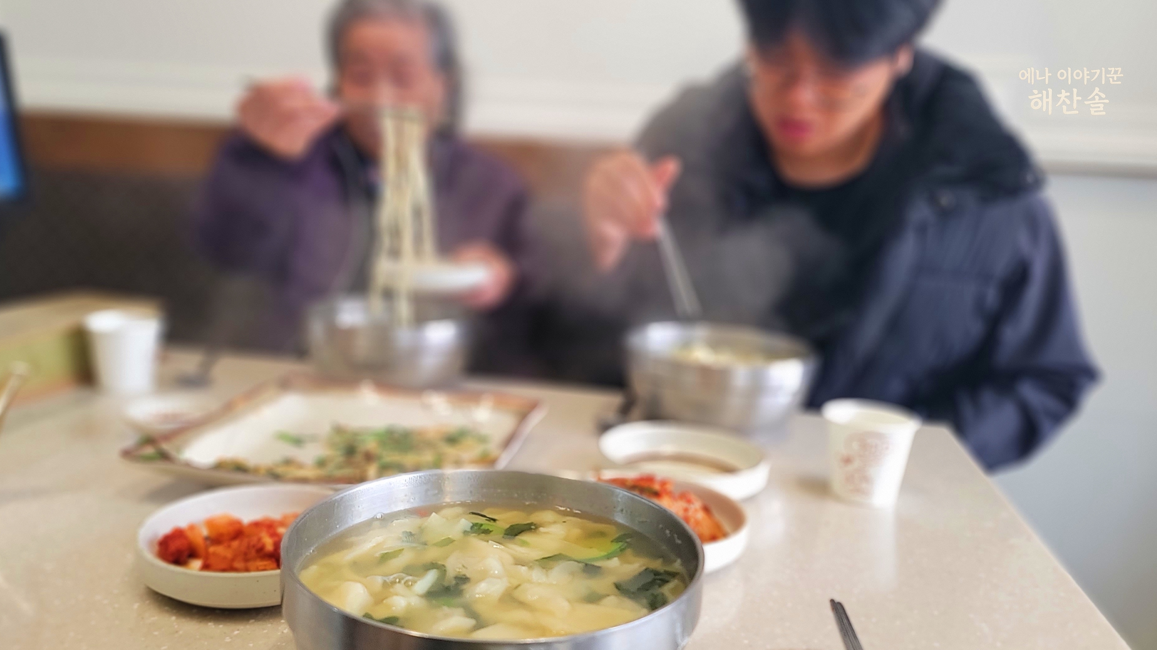 “뭐 먹을까?”에서 시작된 점심 고민은 결국 삼천리국수 호탄직영점으로 향했습니다. 귀가 잘 들리지 않는 할머니 곁에서 손자는 몸을 조금 더 기울여 조곤조곤 말을 건네고, 우리는 김이 오르는 수제비를 후후 불며 같은 속도로 숟가락을 들었습니다.