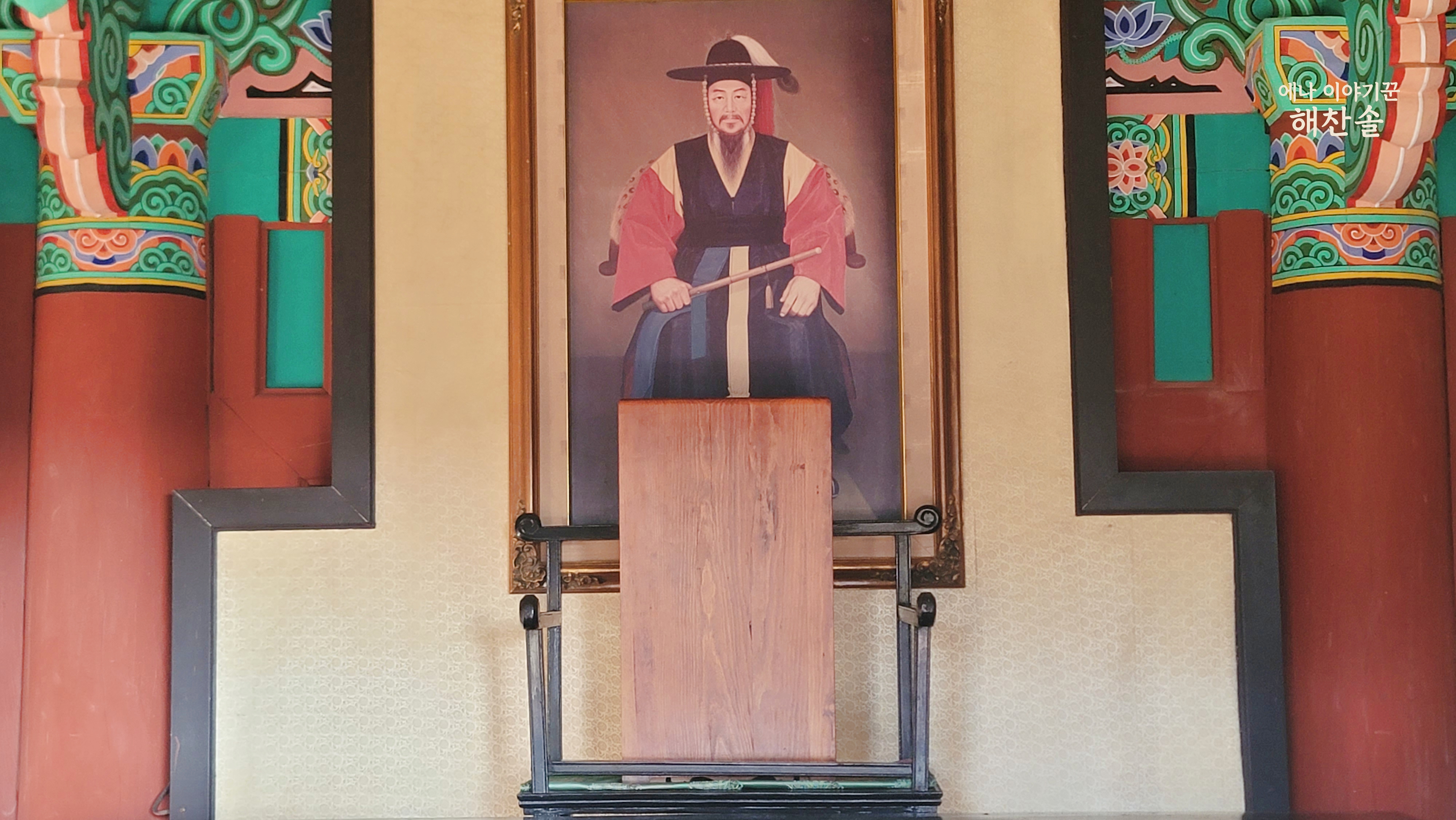 사당 안에는 이순신의 영정이 단정히 자리하고 있습니다. 화려한 장식은 없습니다. 절제된 공간이 오래 남습니다.