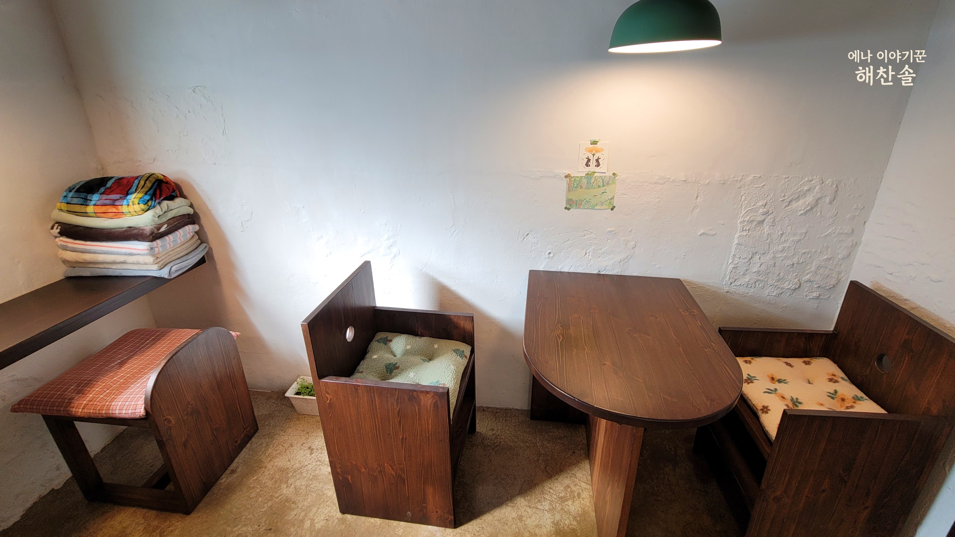 가정집이던 흔적이 그대로 남아 있어 문을 여는 순간부터 마음이 낮아집니다. 이곳은 들어오는 사람에게 속도를 늦추라고 말하는 공간입니다.
