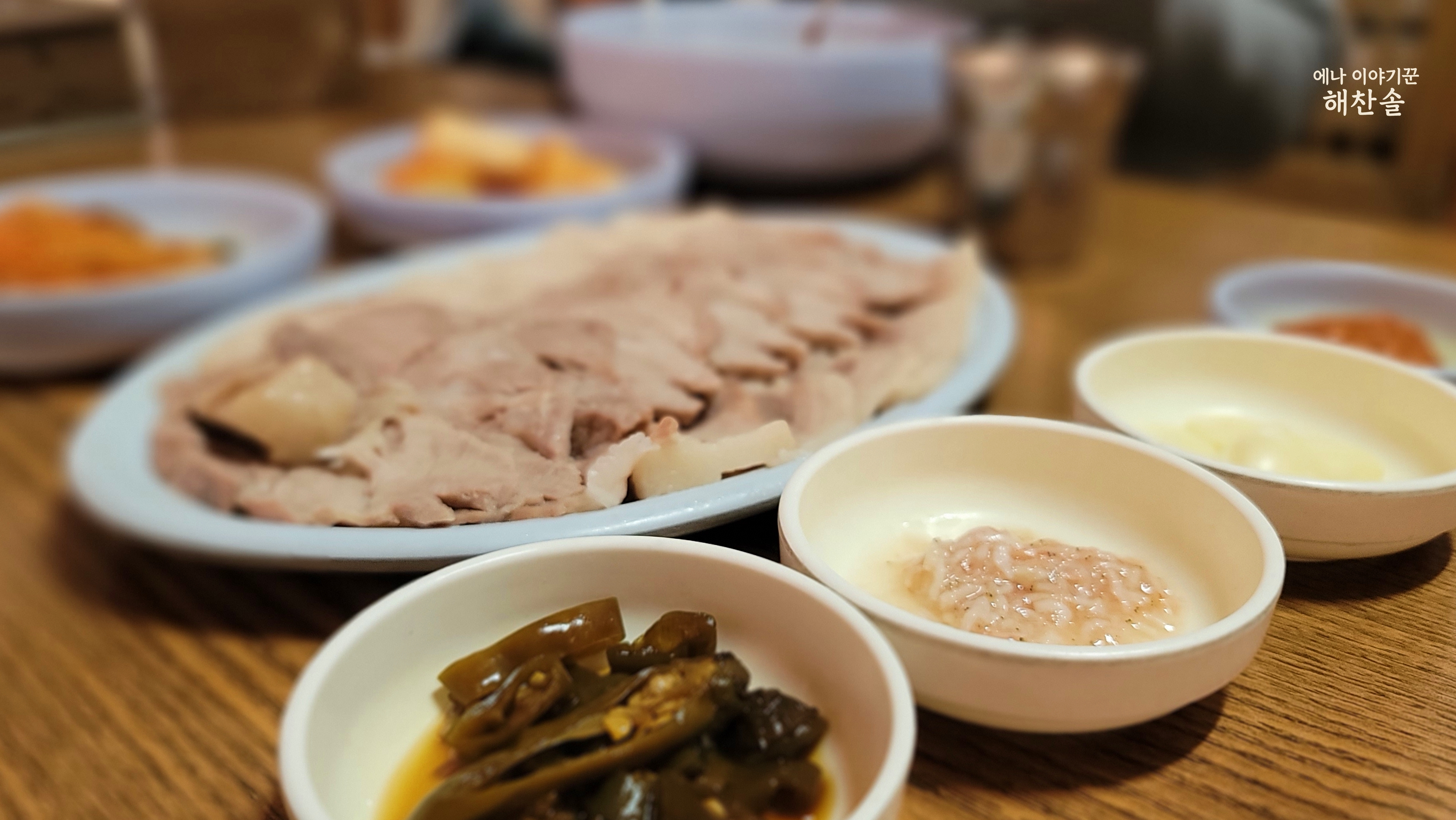 편육은 얇게 저며 접시 가득했습니다. 살코기와 비계가 알맞게 섞였고 잡내는 느껴지지 않았습니다. 아들이 면 위에 편육을 감싸 먹었습니다. 고기가 말없이 접혔습니다. 백마강 물결이 접히듯 부드러웠습니다. 쌈 채소가 없는 점이 아쉽다고 했고 반찬 가짓수도 적다고 했습니다. 아들은 생김치도 묵은지도 아닌 어중간한 김치가 영 마음에 들지 않았다고 합니다.