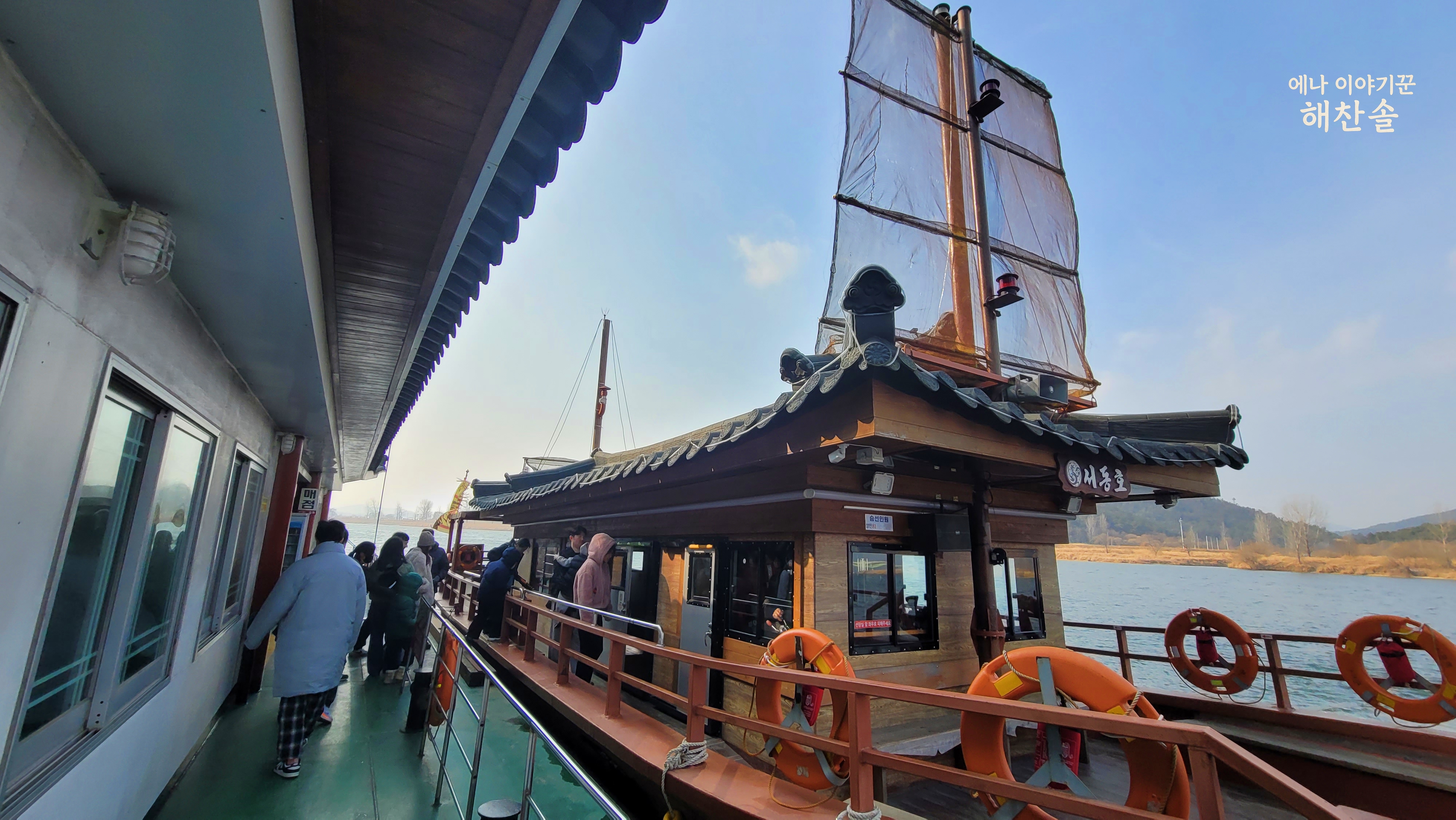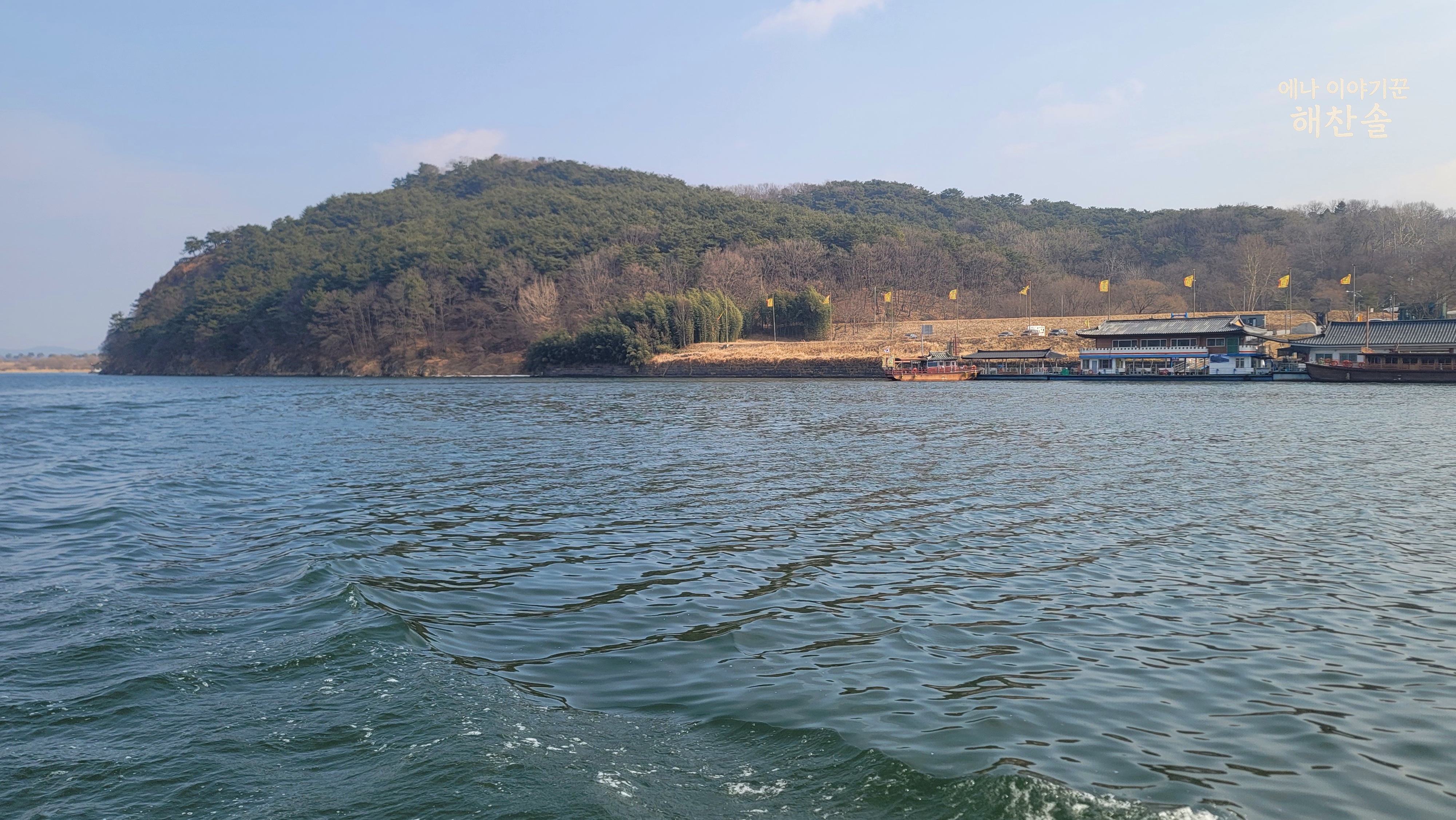 식후 커피 대신 나루터 쪽으로 걸었습니다. 계획에 없던 유람선이 눈앞에 있었습니다. 배에 올랐습니다. 나무 데크 햇볕 냄새 묻었습니다. 황포 돛이 오가는 바람 삼켰습니다.